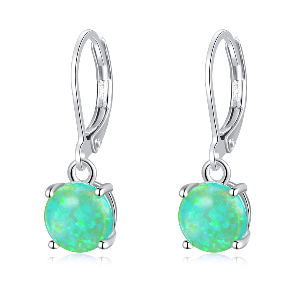 CiNily – Aretes colgantes de ópalo, corte redondo, ópalo de fuego color azul, blanco, rosa, verde, negro, bañado en rodio, joyería
