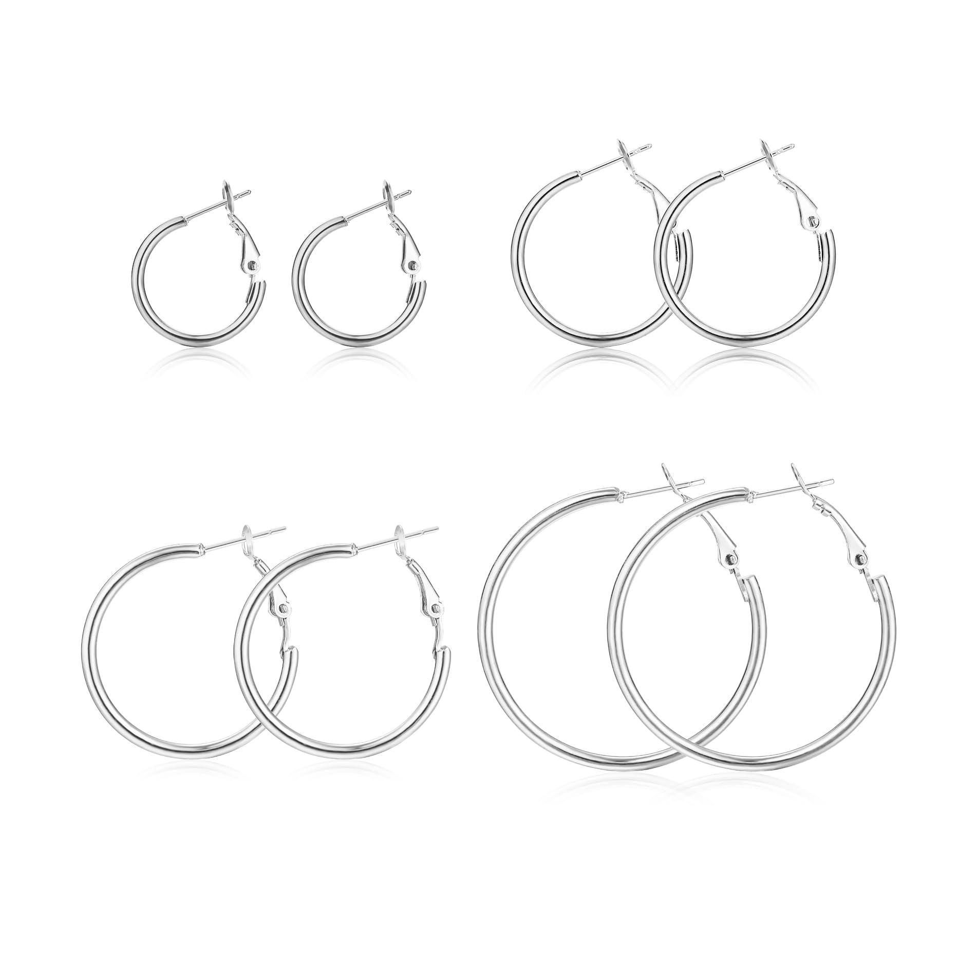 6 pares de aretes de aro de oro y plata para mujer, chapados en oro de 14 quilates, aretes de aro de acero inoxidable para mujer,