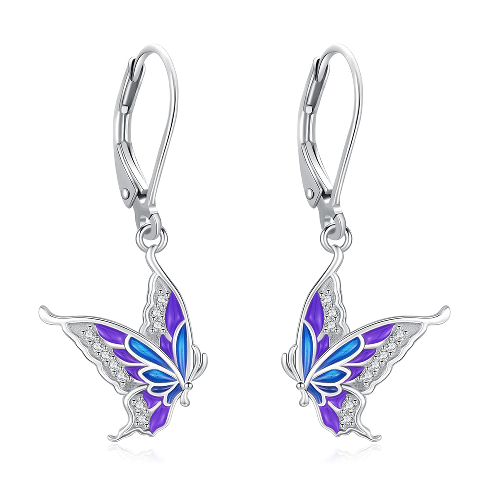 Aretes colgantes de plata de ley con diseño de árbol de la vida, flor, abeja, animales, gato, colibrí, piedra lunar, turquesa, are