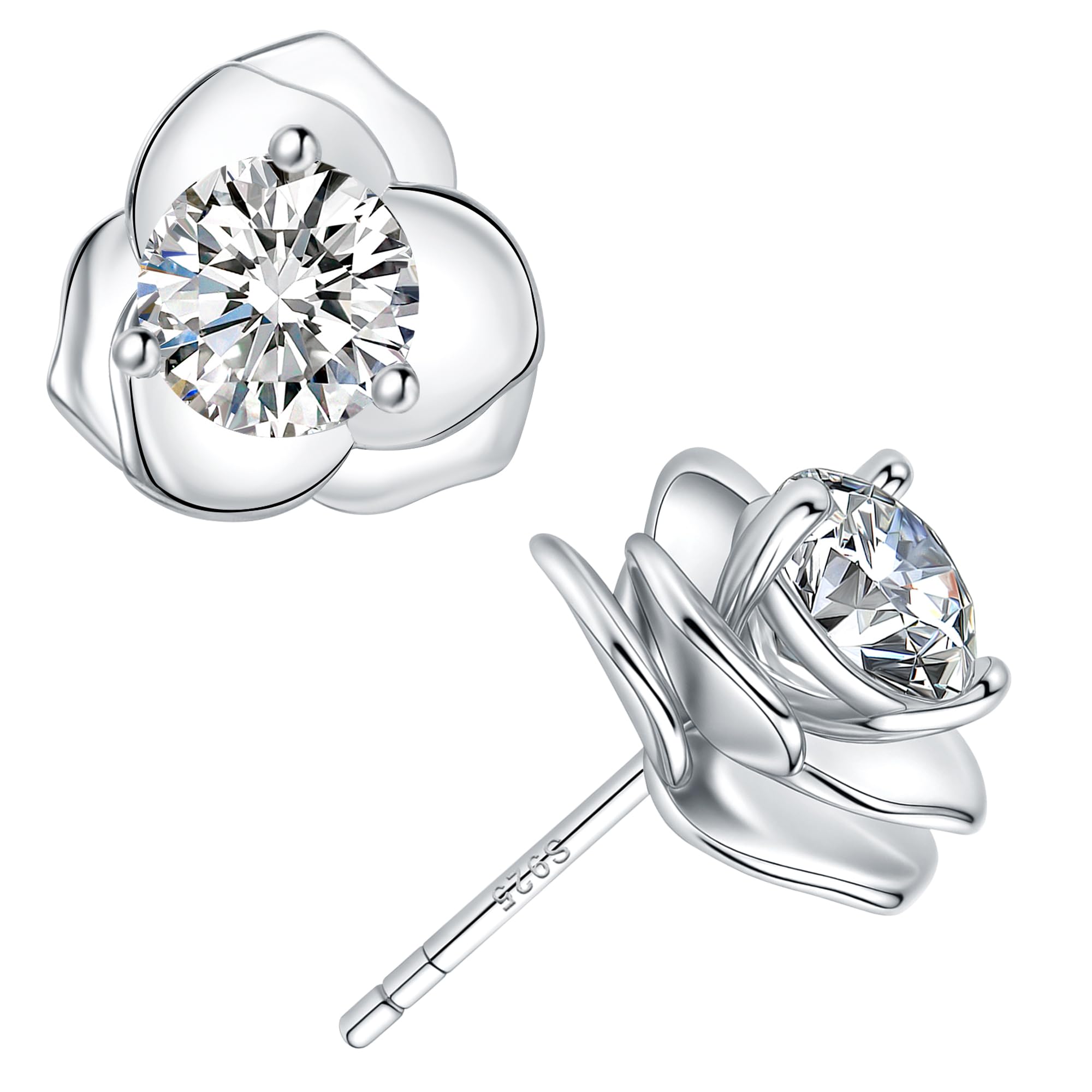 Impalsory Aretes tipo dormilona con rosa de moissanita, plata esterlina chapada en oro de 18 quilates, joyería floral hipoalergéni