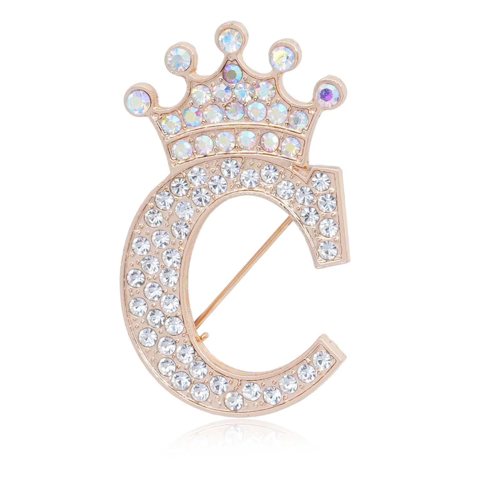 Broche de letra inicial con corona para mujeres, niñas, hombres, niños, broches con nombre personalizado, manualidades, broches de