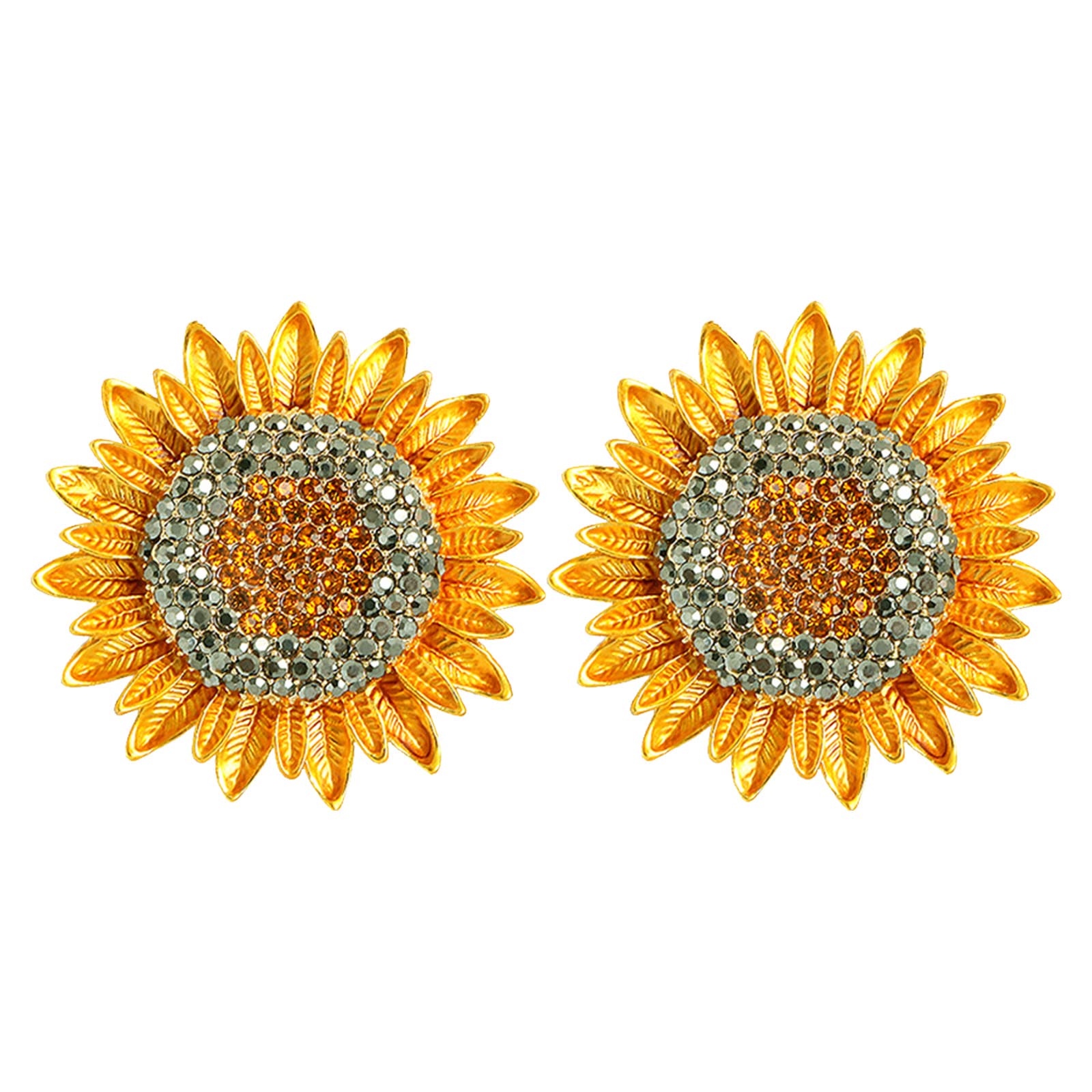 Finduat 2 broches de girasol para mujer, diamantes de imitación de cristal de color, retro, hechos a mano, elegantes