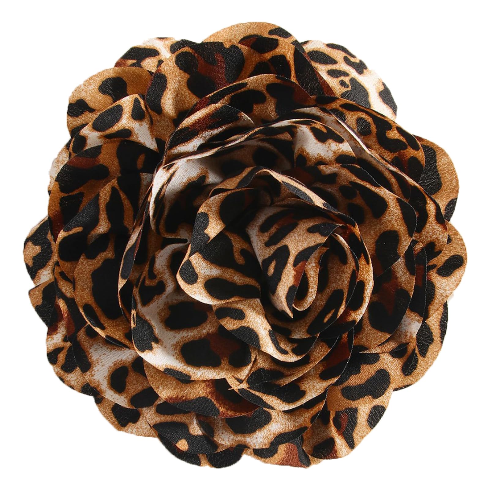 PLwelth Broche con estampado de leopardo, pinzas grandes para el cabello de flores para mujer, broche de flores de tela, alfileres