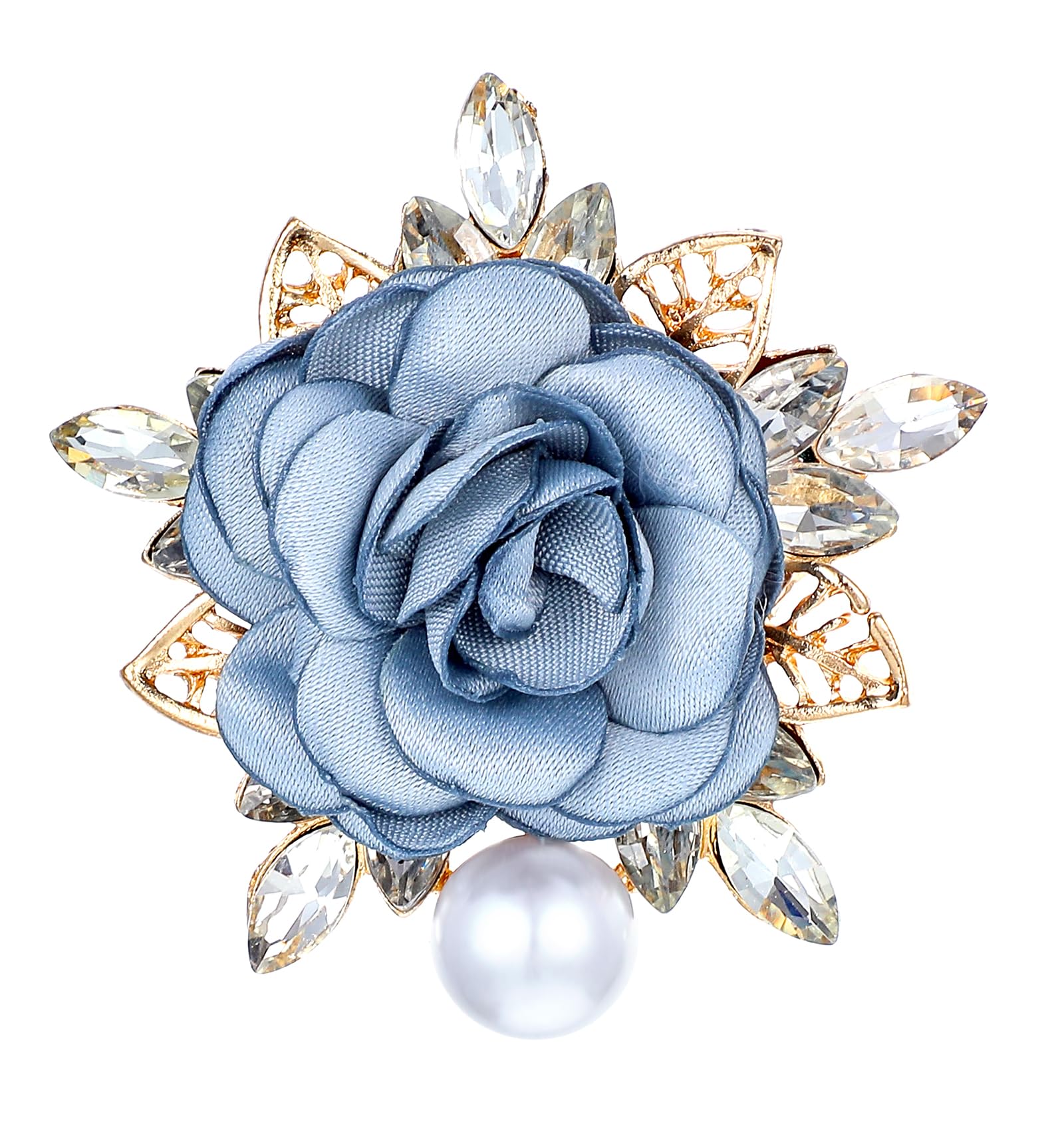 Broche de flores, broches azules de 2 pulgadas con perlas de cristal hechas a mano para mujeres, broches de flores grandes para mu