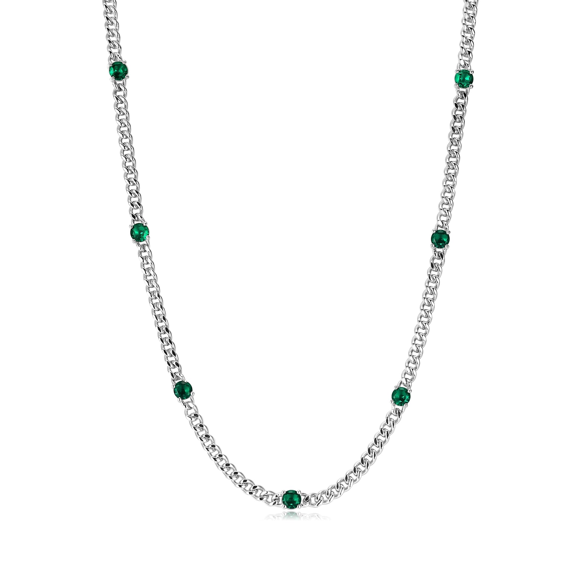 FANCIME Collar de cadena cubana de plata de ley de 0.142 in con piedra natal de mayo con esmeralda redonda de 0.177 in, joyería fi