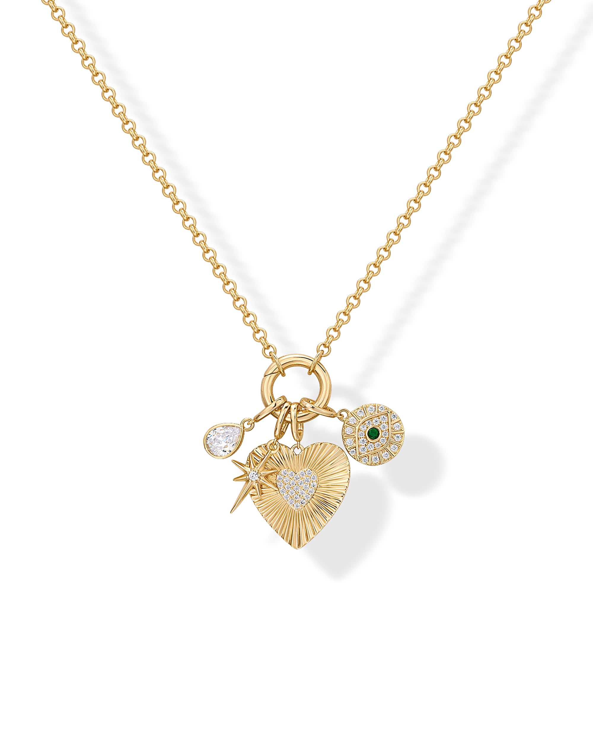 PAVOI Collar chapado en oro de 14 quilates con dije de corazón para mujer, cadena de corazón, estrella, piedras preciosas de mal d