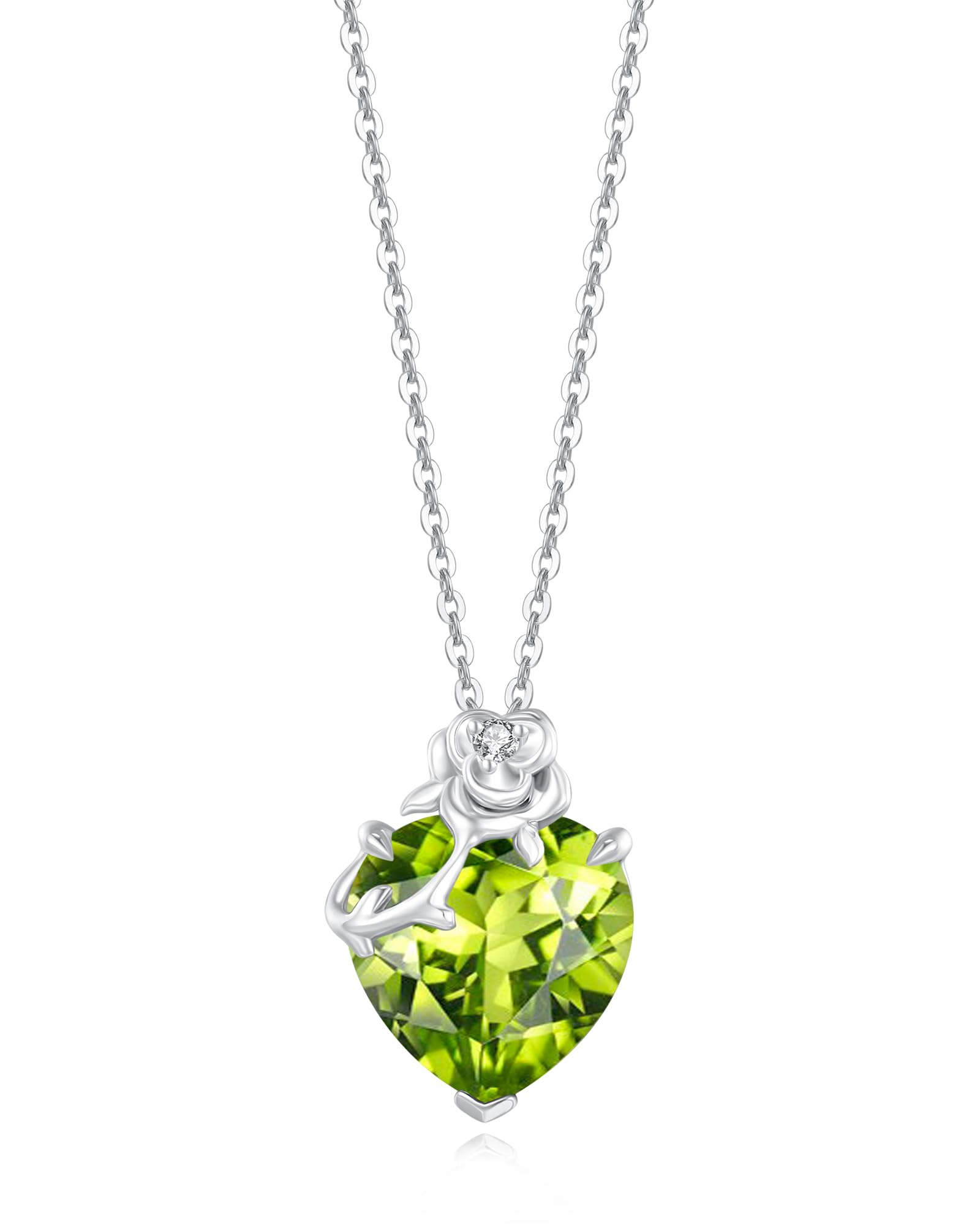 FANCIME Colgante de oro blanco sólido de 14 quilates con cadena de plata de ley, piedra natal de corazón, piedra preciosa, joyería
