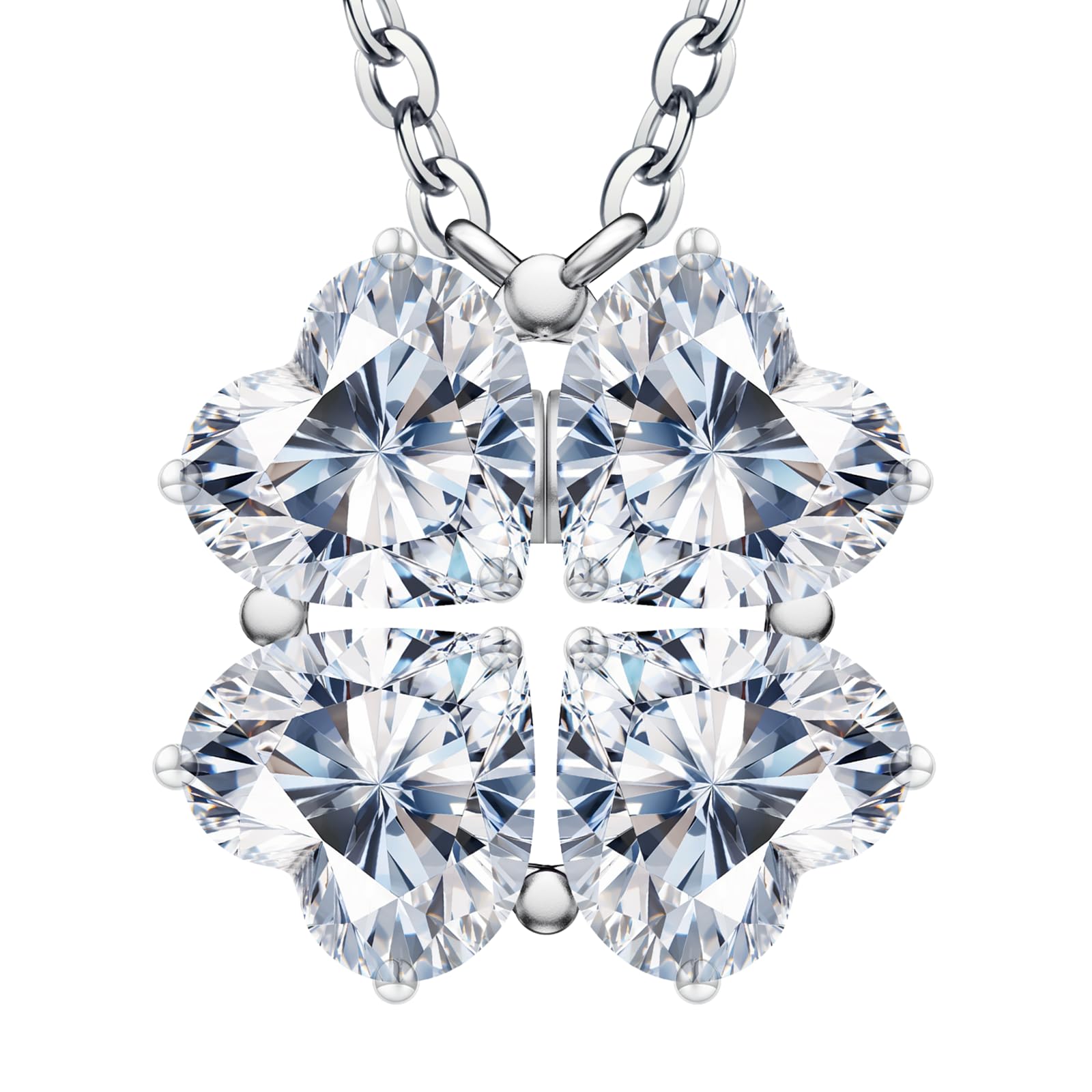 Luckylove 2-In-1 Four Heart Necklace for Women, 4 or 2 Carats Moissanite, Sterling Silver Jewelry, Anniversary Birthday Christmas