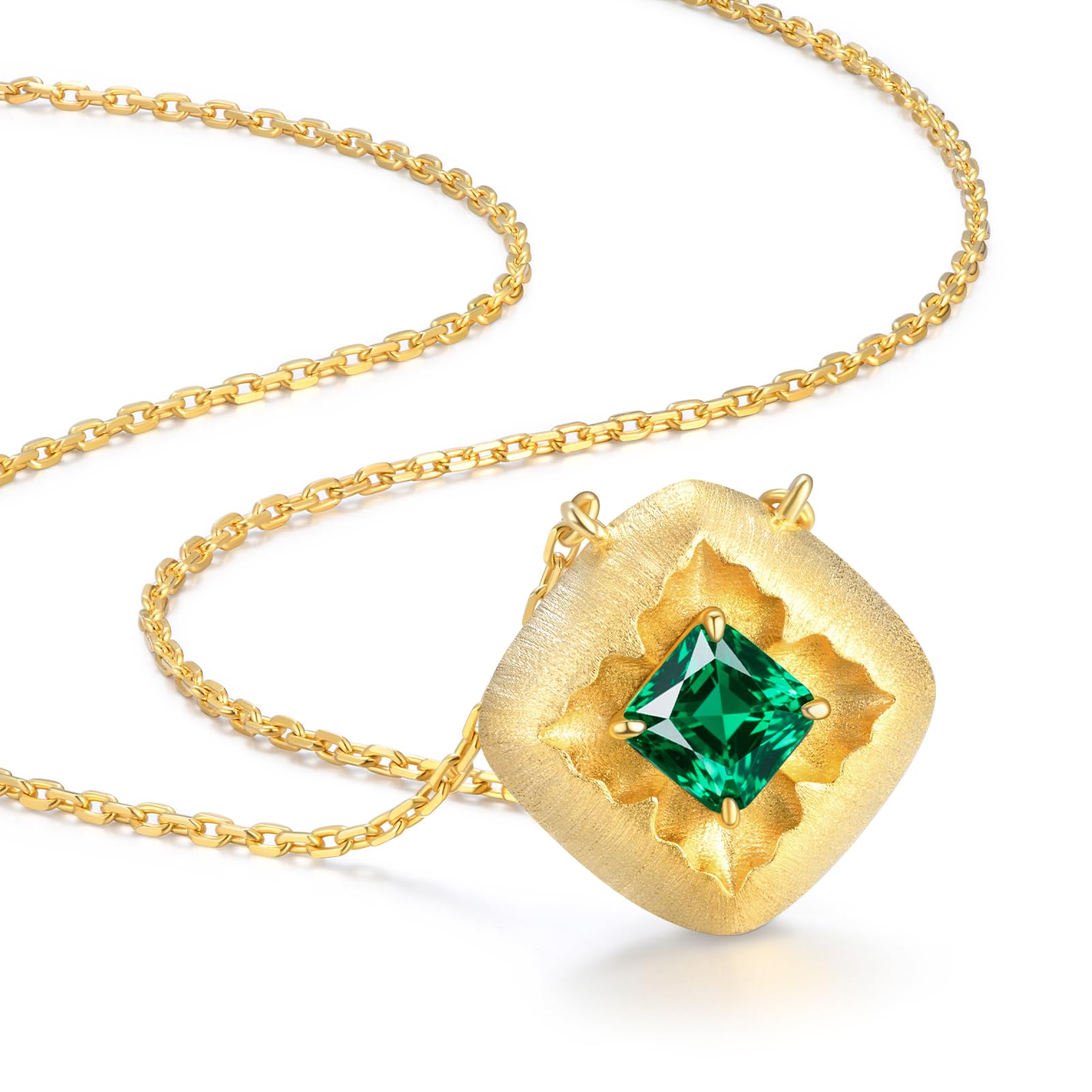 LEONIDS Collares de trébol de oro cepillado de 14 quilates para mujer, collar con colgante de esmeralda cultivada en laboratorio c
