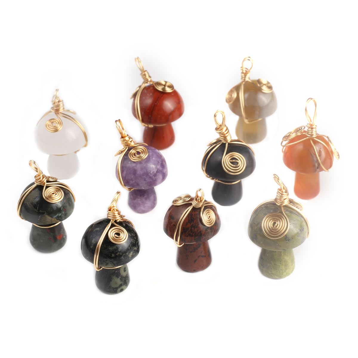 7 piezas de piedra natural colgante de cuarzo rosa ágata unakita trenzada y herida forma de hongo encantos para hacer bricolaje jo
