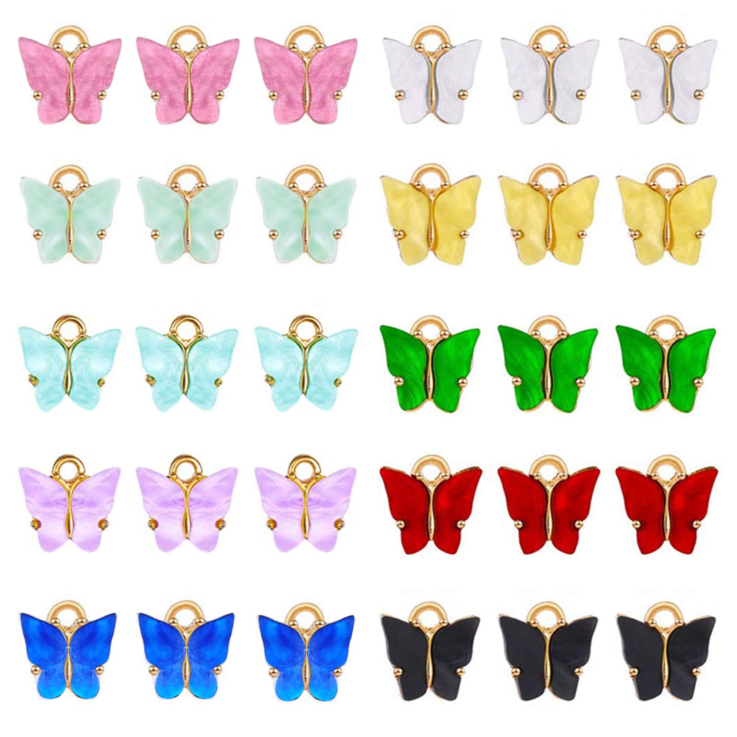 ANDPAI Kit de 30 dijes de mariposa – Colgantes acrílicos de mariposa, 10 colores, 0.551 x 0.433 in, para fabricación de joyas y ac