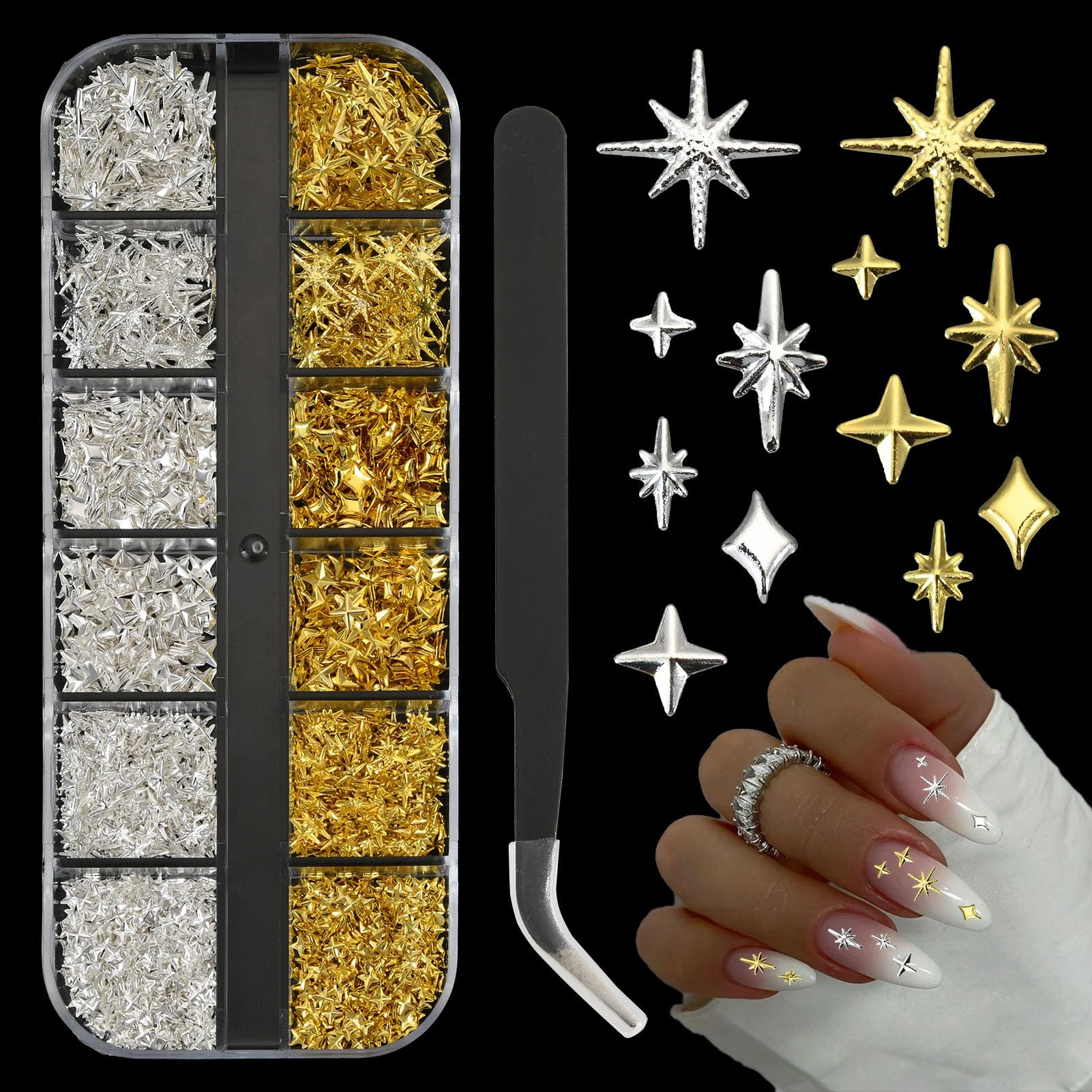 2500 dijes de uñas de estrella, dijes de uñas plateados y dorados a granel para bricolaje 3D de arte de uñas y dijes para diseño d