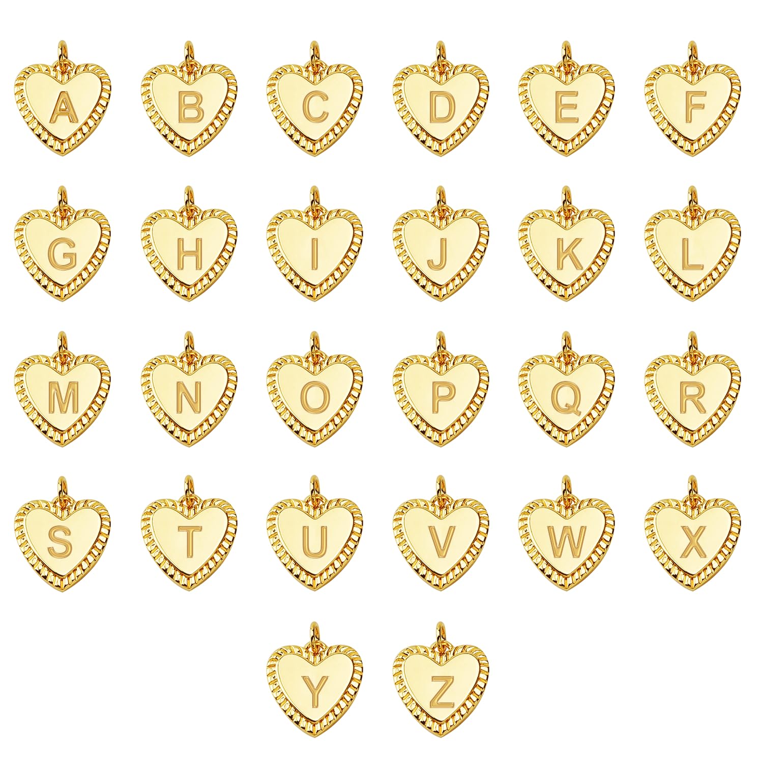 26 dijes de letras rellenas de oro de 18 quilates para hacer joyas, diseño de corazón, cuentas del alfabeto de la A a la Z para pu