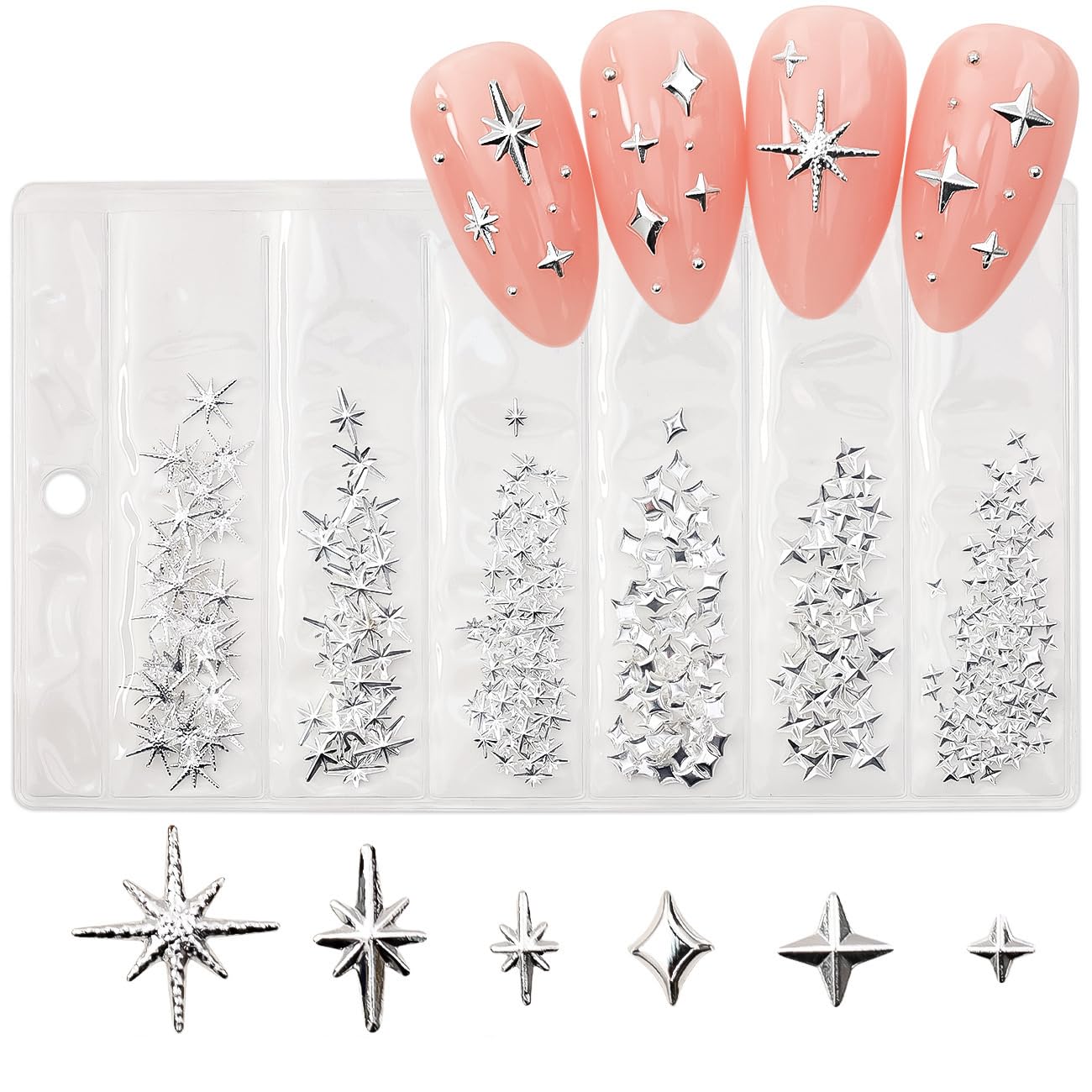 200 dijes de uñas de estrella para uñas, arte de uñas de estrella plateada 3D, dijes metálicos, diamantes de imitación de estrella