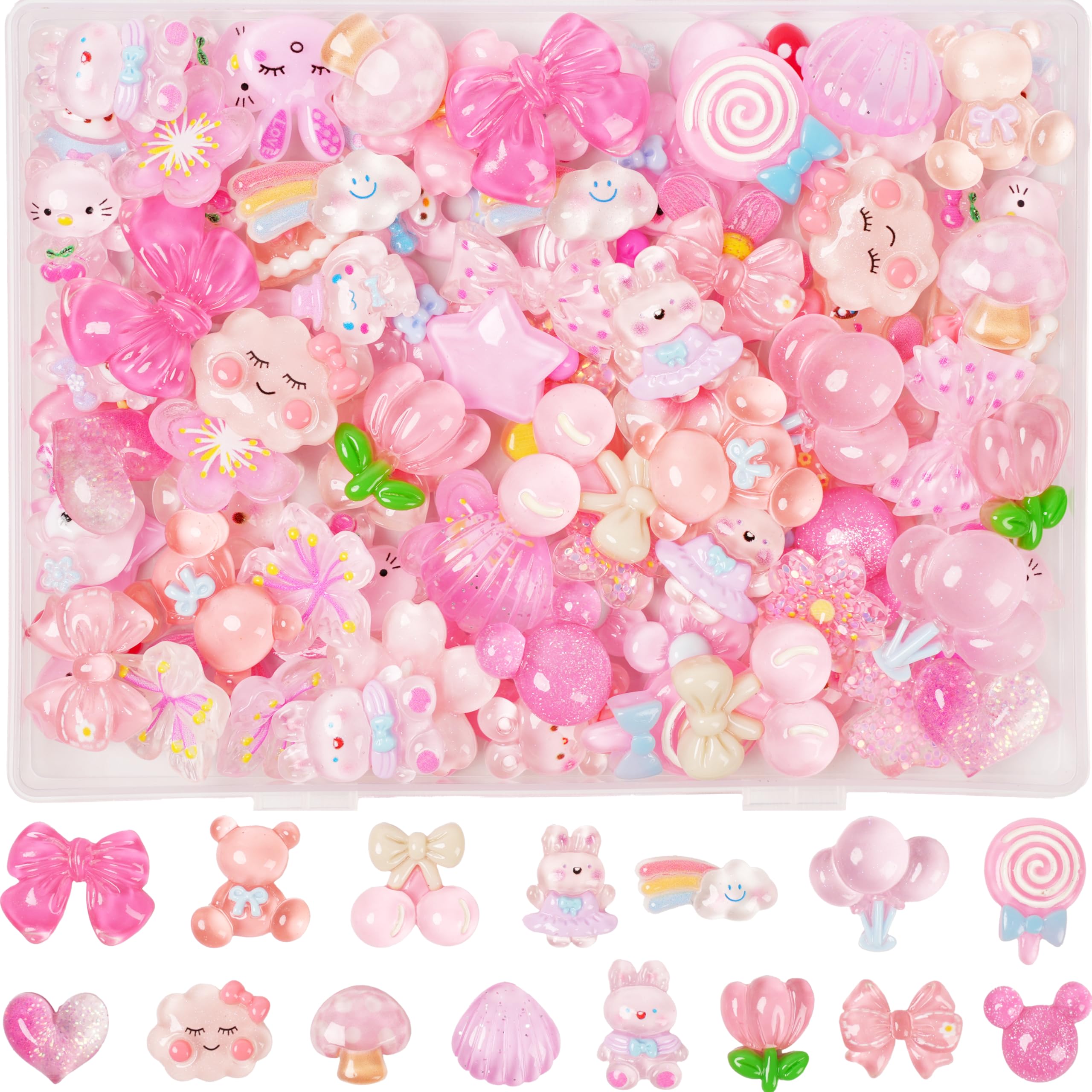 70 dijes de resina de limo rosa, bonitos adornos a granel, accesorios de decoración de adornos mixtos