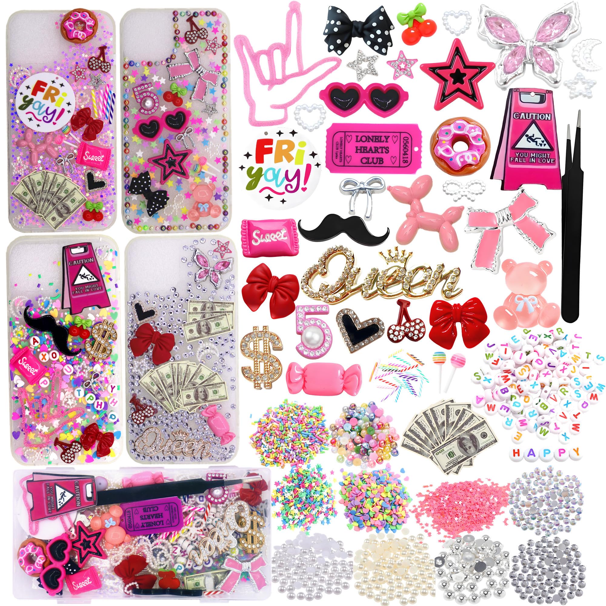 Kit de dijes para estuches, 3000 dijes de basura para fundas de teléfono, dijes de uñas, lazo rosa, abalorios de letras