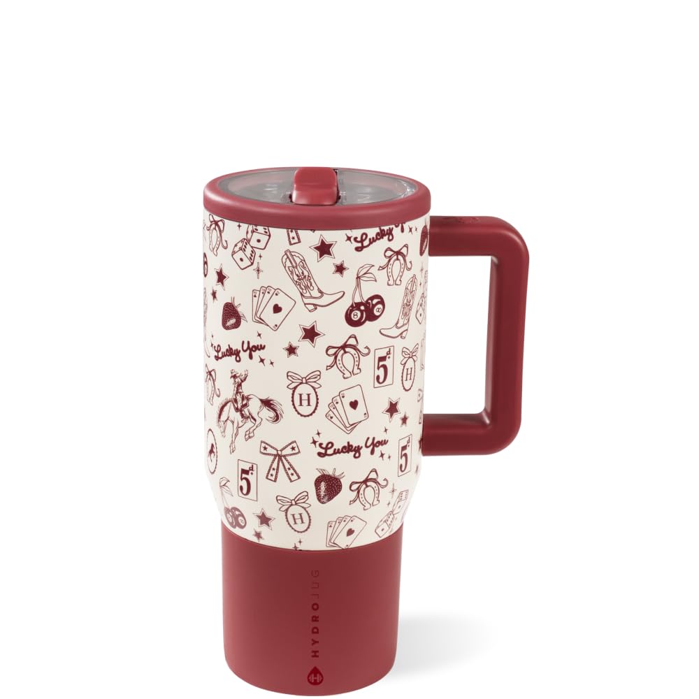 HydroJug Traveler – Botella de agua de 20 onzas con asa y popote abatible, cabe en el soporte para tazas, vaso resistente a fugas,