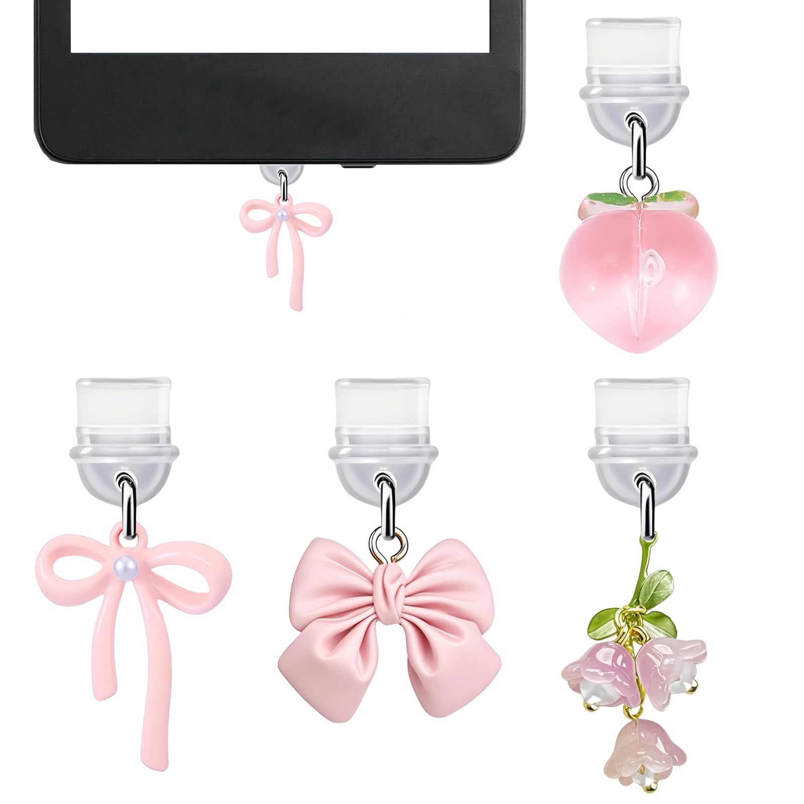sunla 4 dijes para tapón antipolvo tipo C para lector electrónico, color blanco 11, color rosa, compatible con teléfono, iPad con