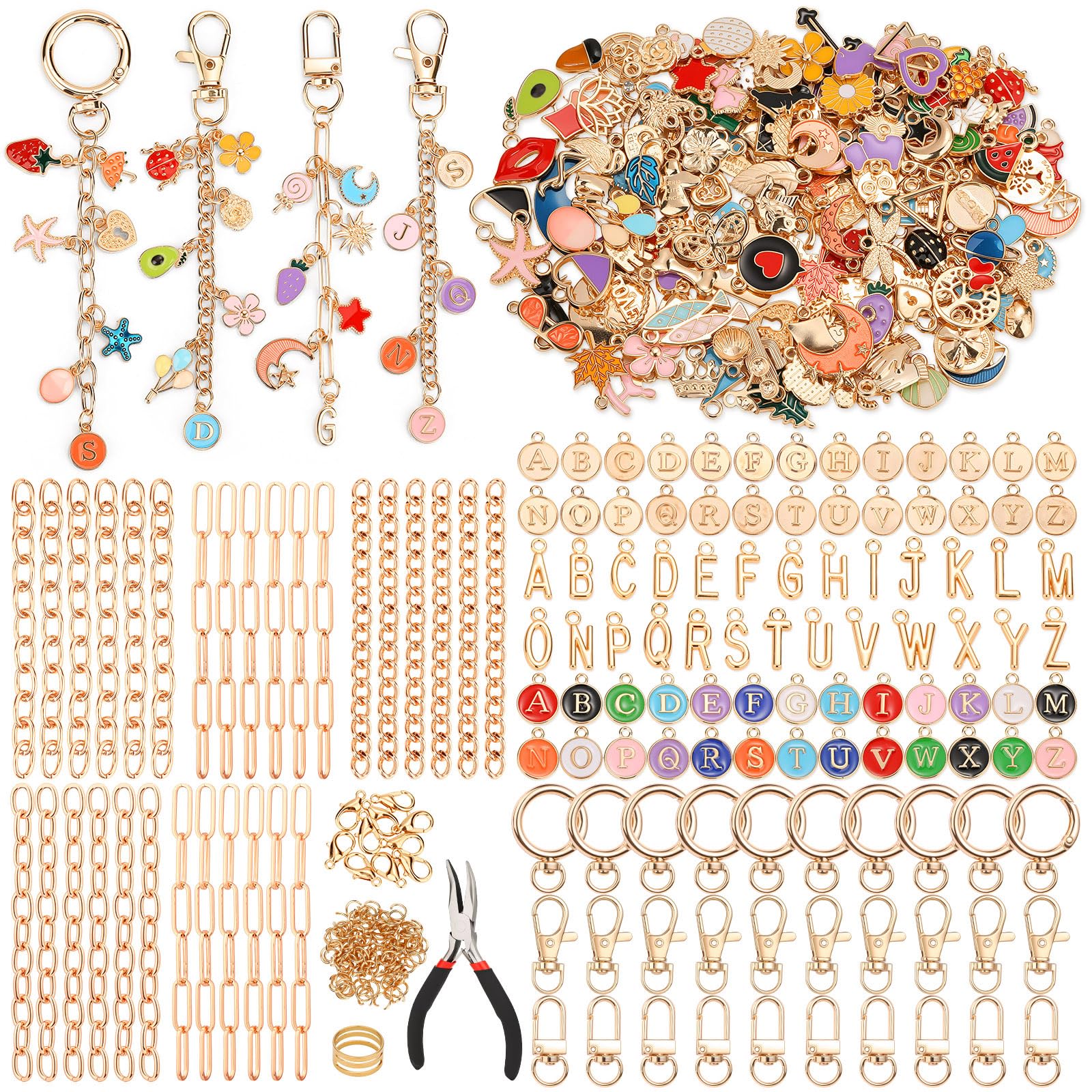 Kit de 500 dijes para hacer llavero, suministros de manualidades con dijes, ganchos para llavero, anillos de salto, cierres de lan