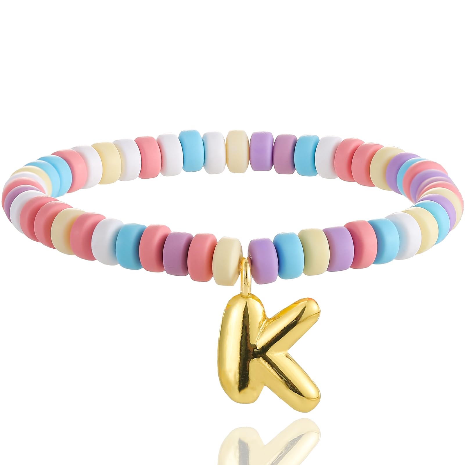 Pulseras de oro para mujer, chapados en oro de 14 quilates, con cuentas de corazón con letras de corazón, pulsera elástica con ini
