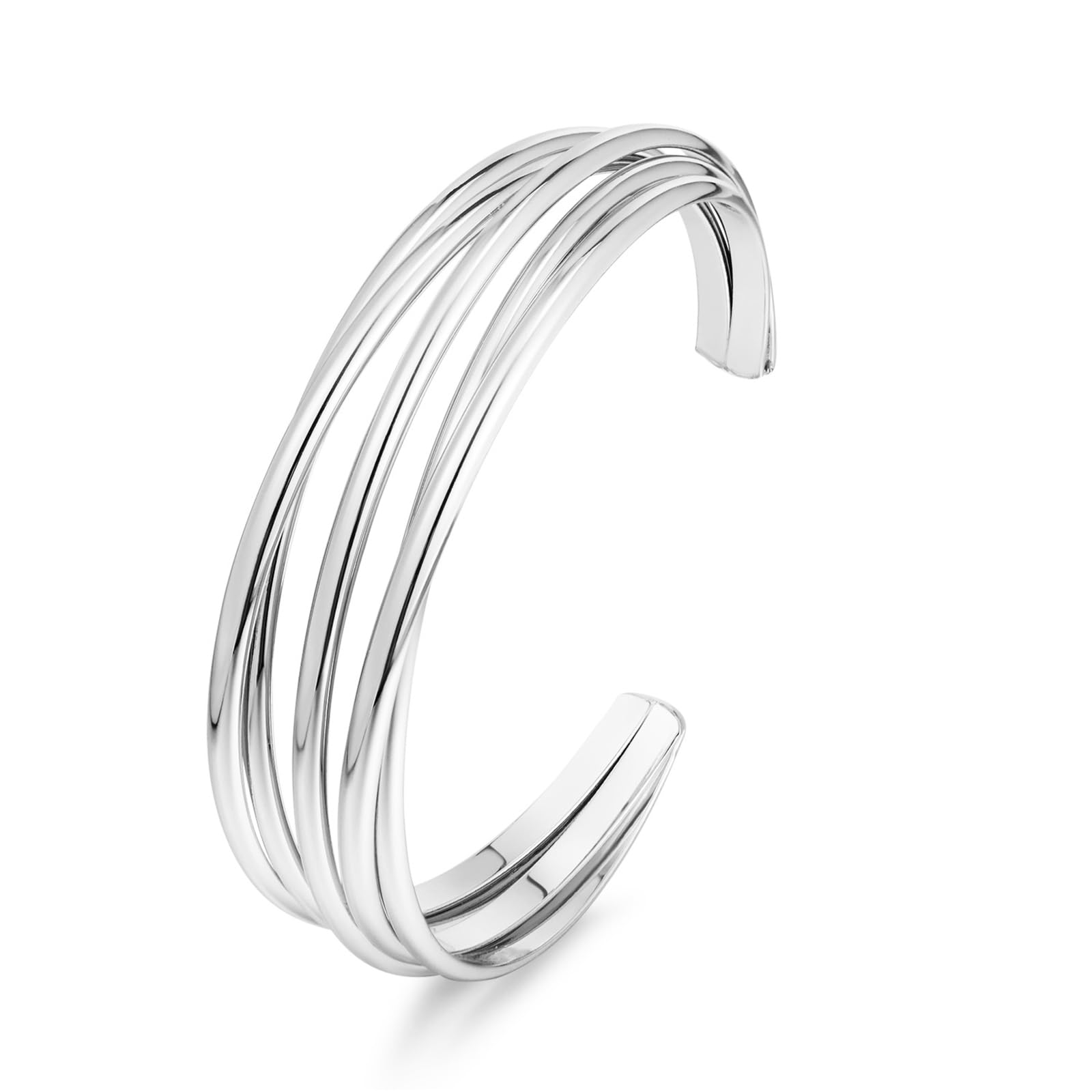 Pulsera dorada para mujer, gruesa y multicapa, con alambre cruzado abierto, hueco, ancho, ajustable, color dorado
