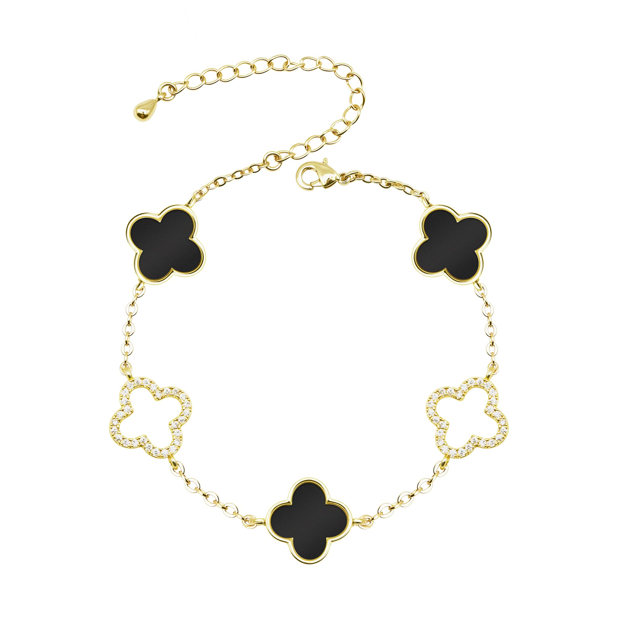 Pulsera de trébol chapada en oro de 18 quilates para mujer, pulsera de amistad apilable, pulseras de eslabones de la suerte, regal