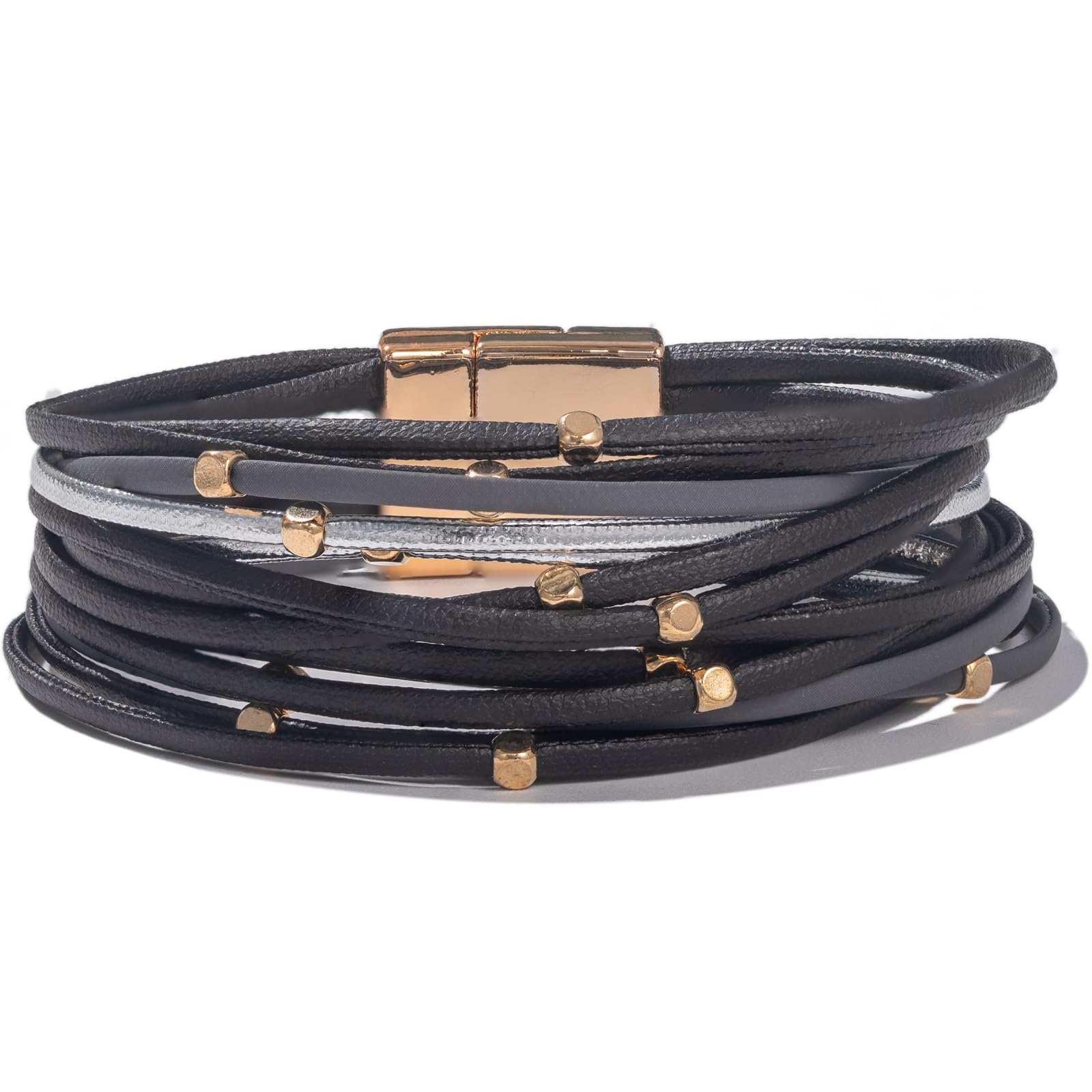 FANCY SHINY Pulseras de cuero con cuentas, estilo bohemio, apilable, con cierre magnético