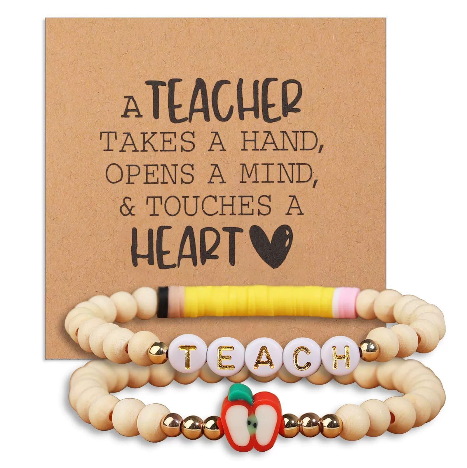 2 pulseras de tarjetas con cuentas de arcilla de manzana para profesores para mujer, joyería