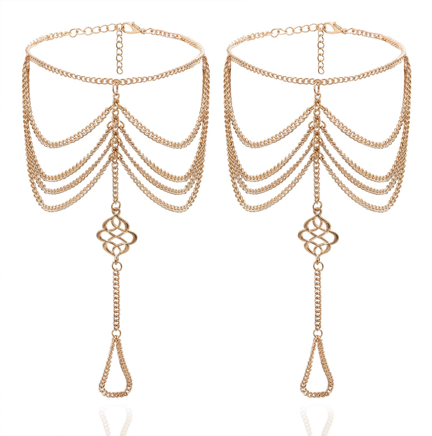Tobillera con varias cadenas, borlas, brazalete, sandalias, joyas para pies (2 unidades)