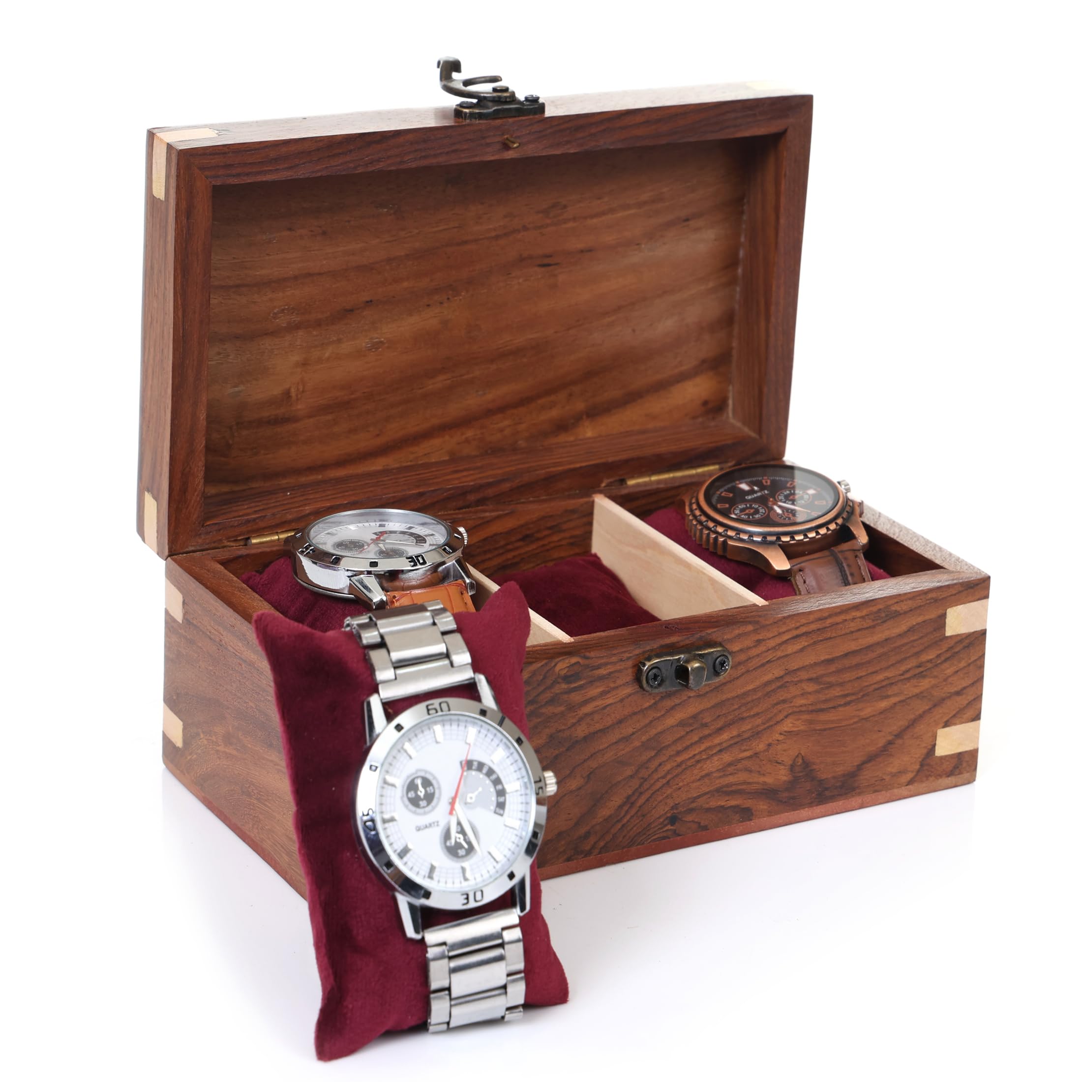 Shanik Caja de reloj de madera para hombre, almacenamiento personalizado con 5 ranuras para relojes, almohadas de terciopelo suave