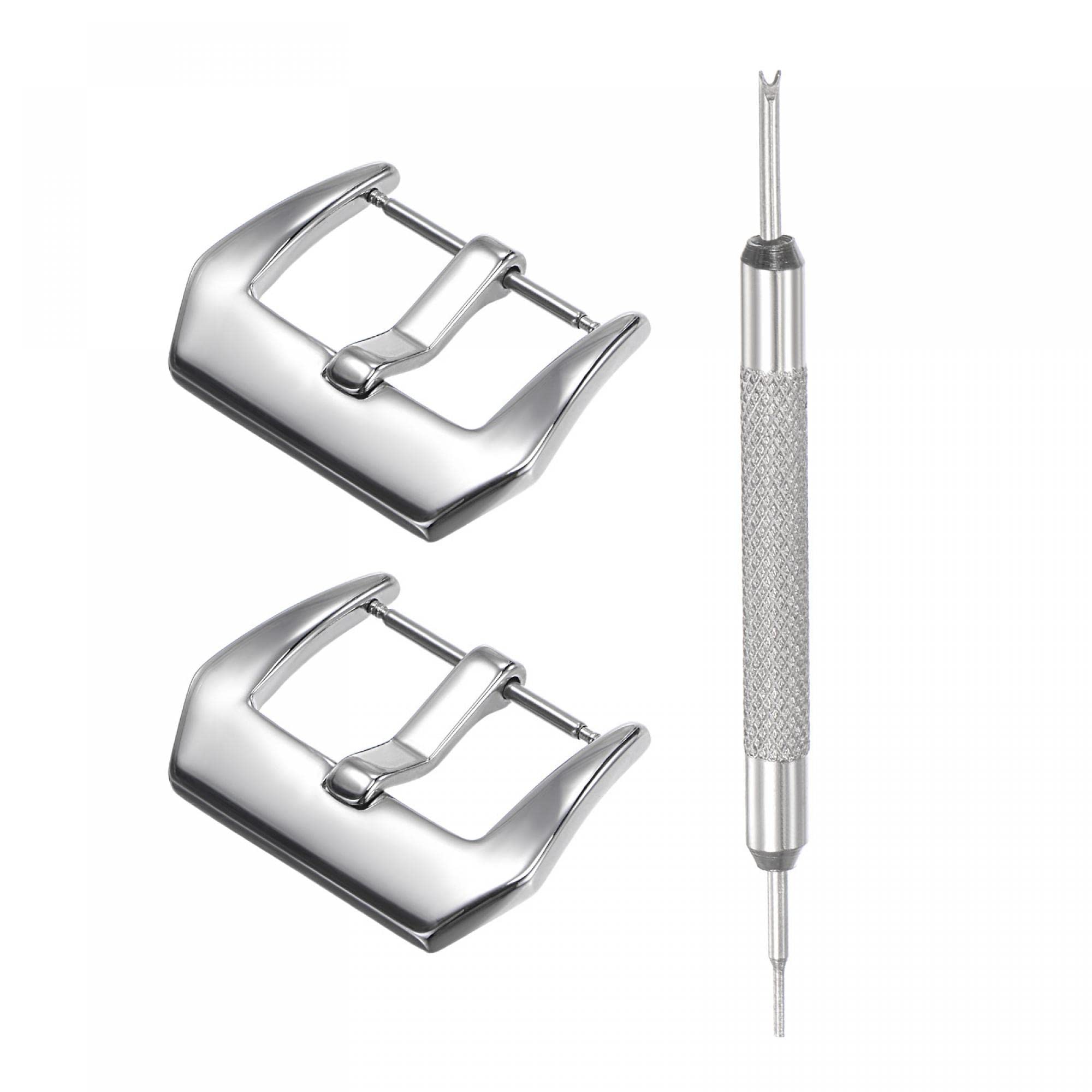 uxcell Juego de repuesto de cierre de correa de reloj, hebilla de PVD pulido de acero inoxidable, tono plateado para correas de re