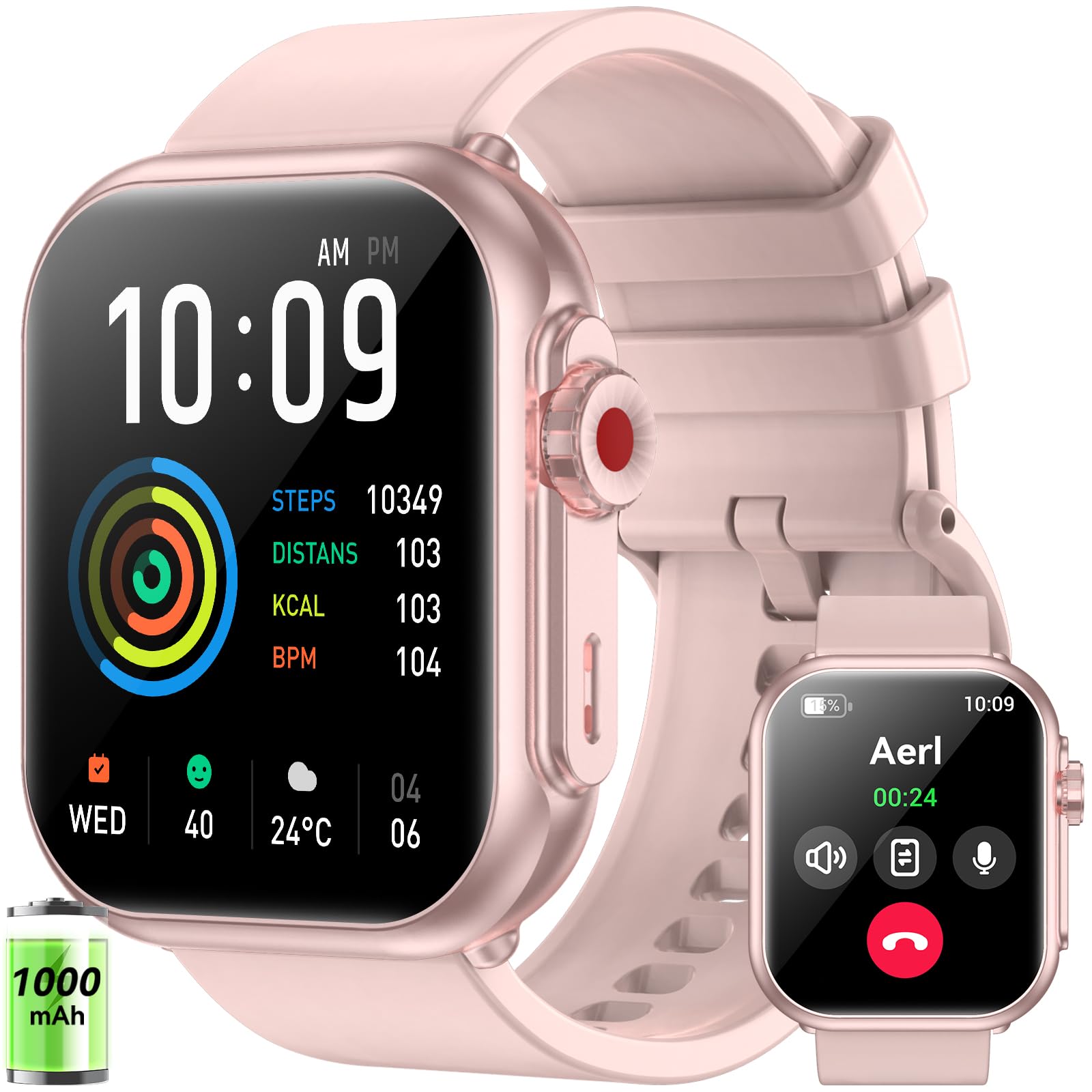 Reloj inteligente para hombres y mujeres, batería de 1000 mAh, tiempo de espera de 100 días, pantalla HD de 1.85 pulgadas, rastrea
