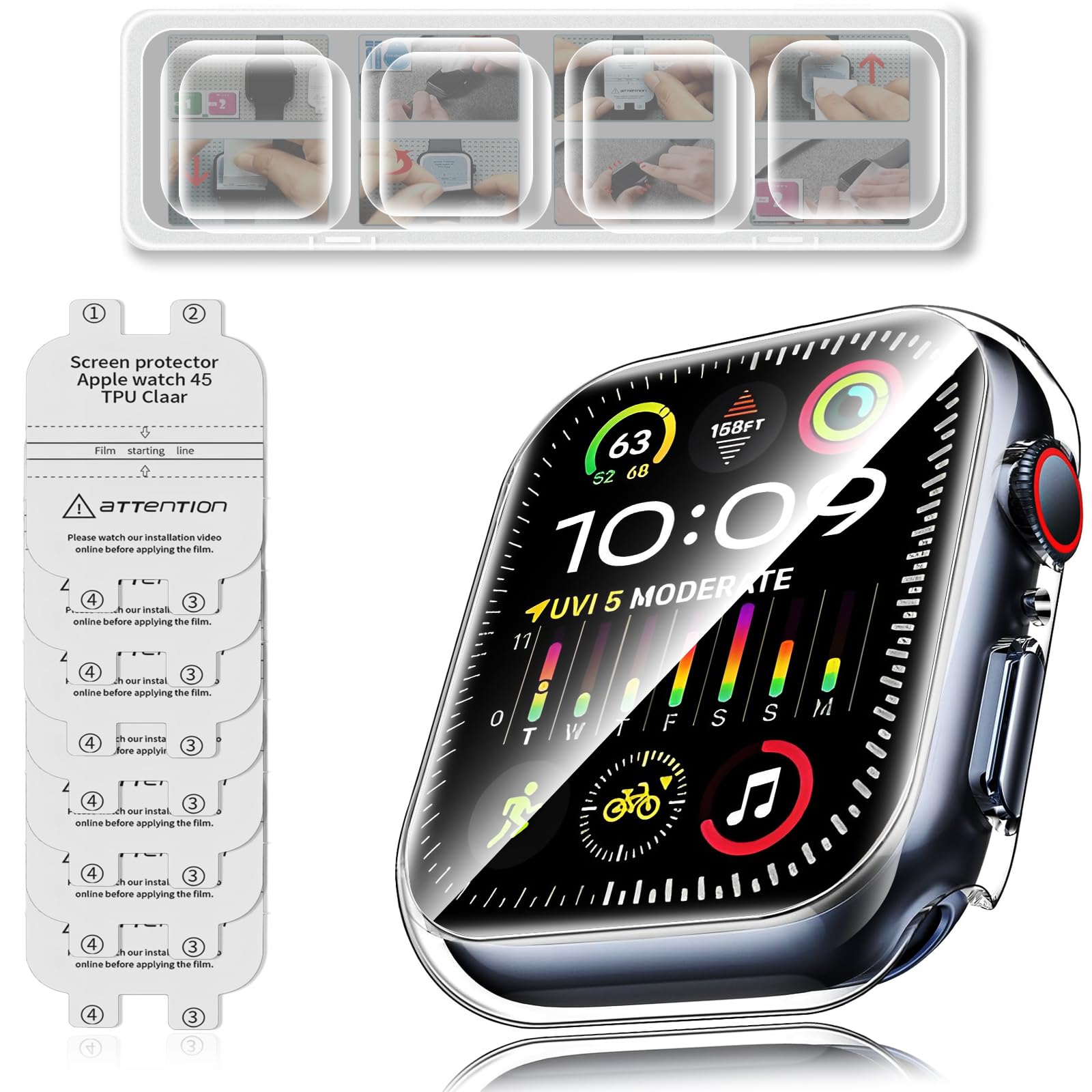 Paquete de 7 protectores de pantalla para Apple Watch Series 9, 8, 7, 1.772 in, Ultra HD TPU, protectores de pantalla flexibles pa