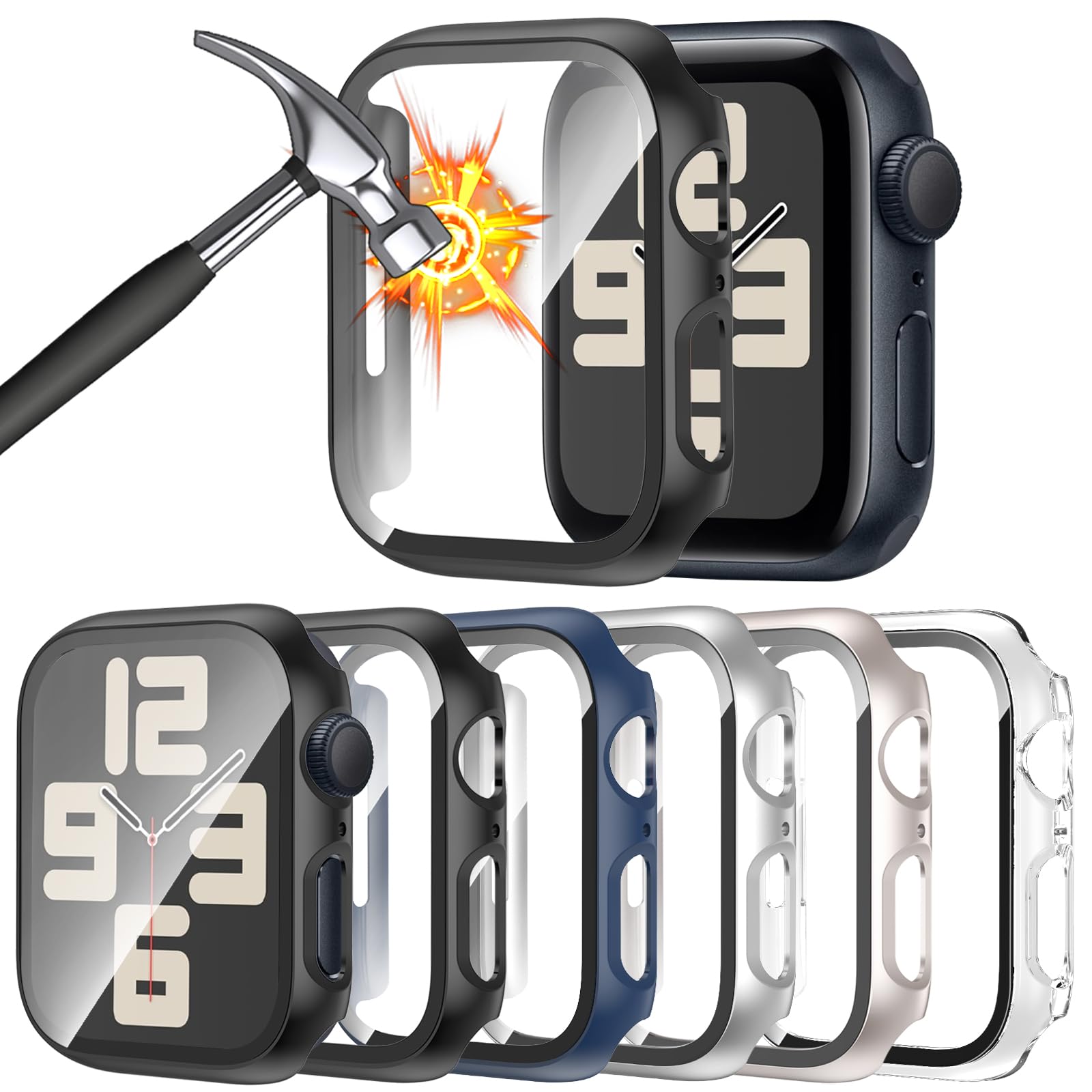 Paquete de 6 fundas para Apple Watch SE 2ª generación Series 6 5 4 SE 1.732 pulgadas, protector de pantalla de vidrio templado ult