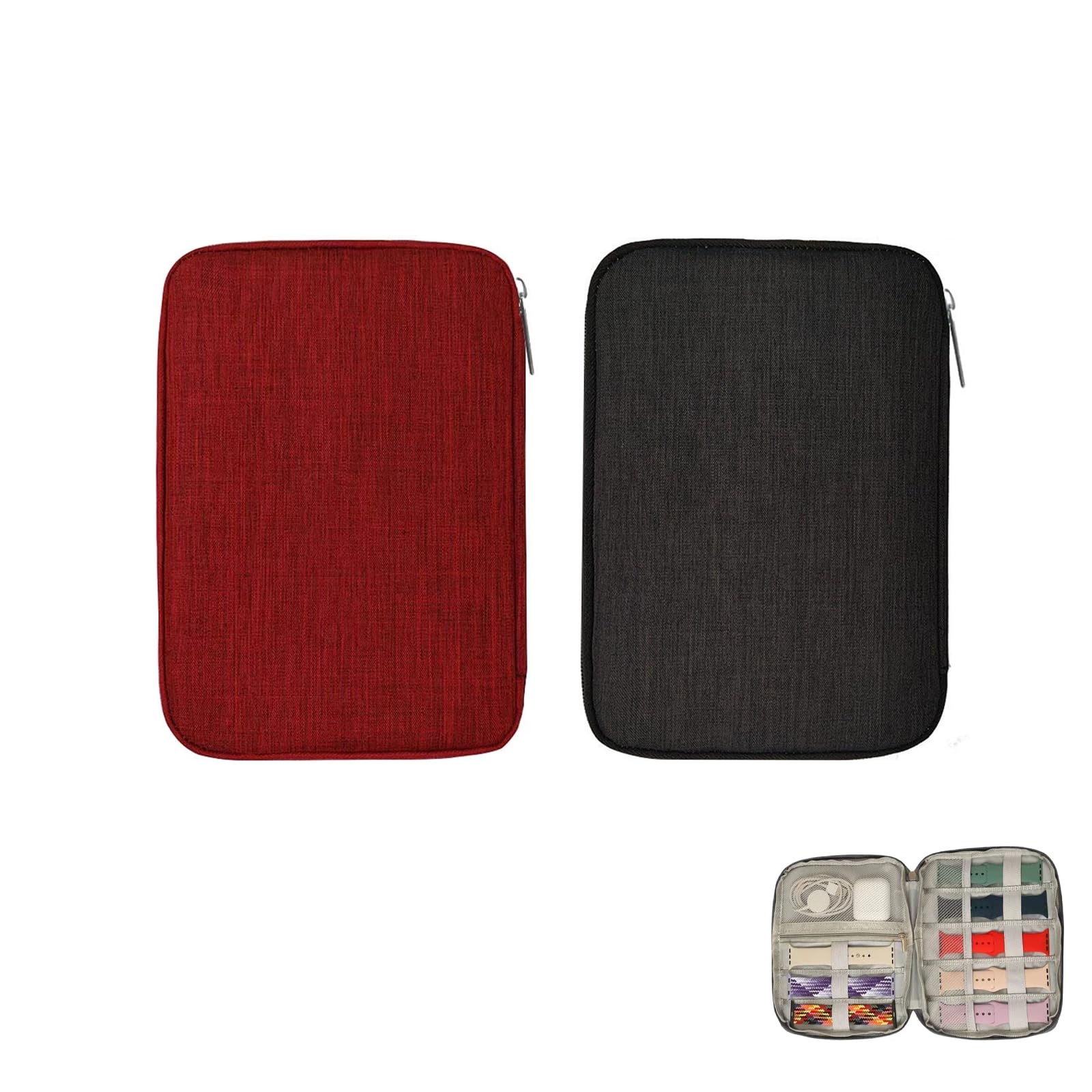 Paquete de 2 correas de reloj, estuche de transporte resistente al desgaste, organizador de viaje (negro y rojo)