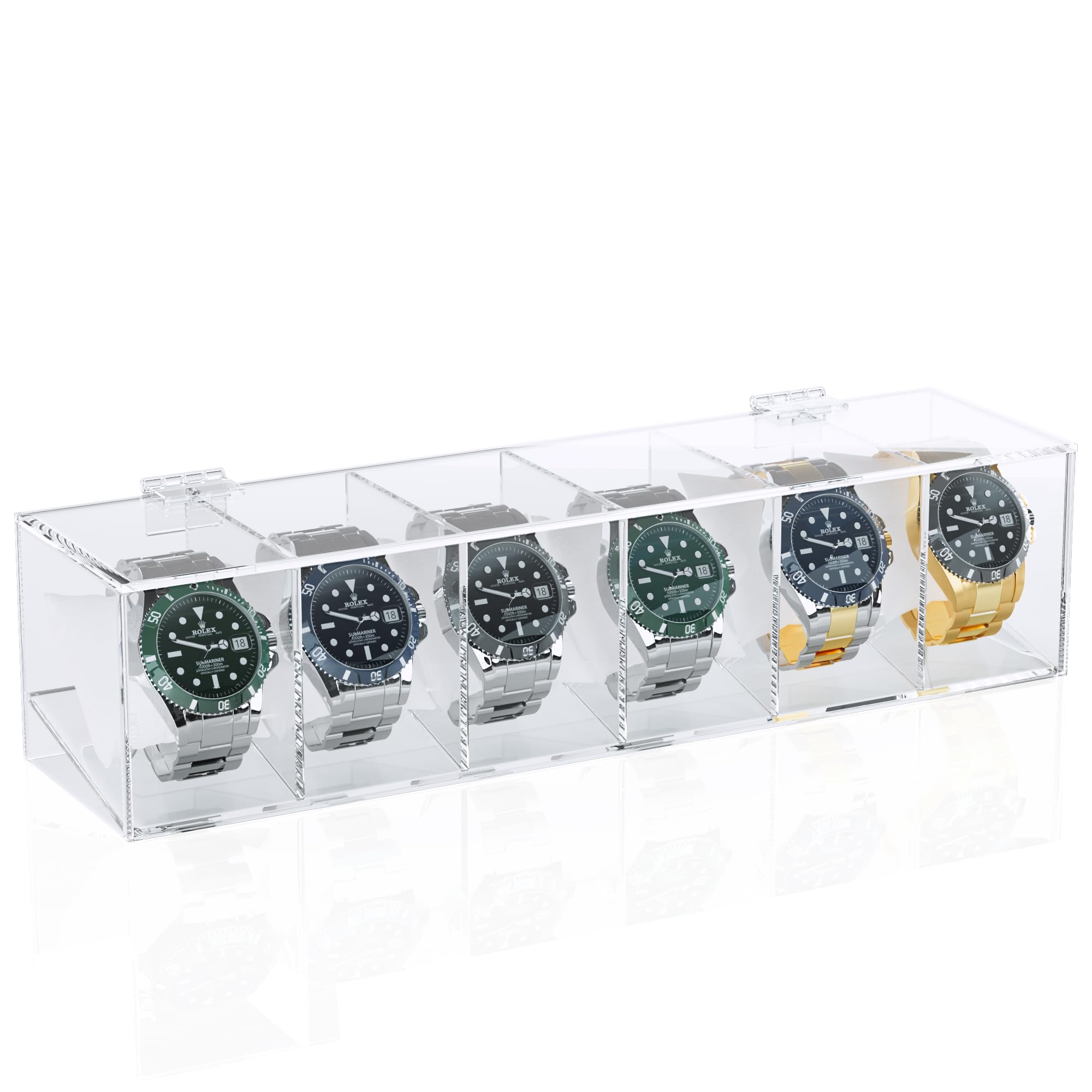 Caja de reloj de 6 ranuras, funda de reloj acrílica para hombre, organizador de relojes acrílico de alta calidad, estuche transpar