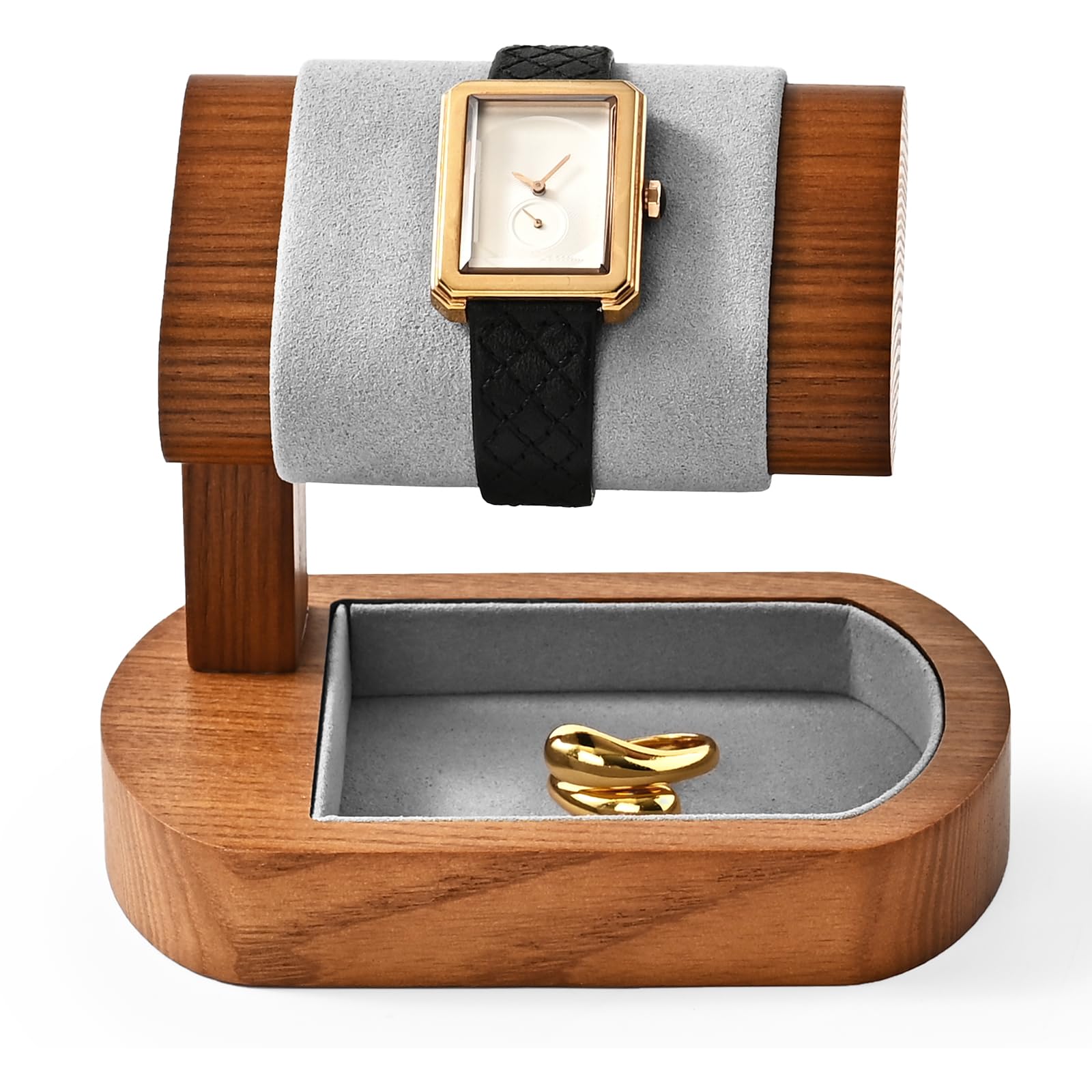 Soporte de reloj de madera maciza para reloj de exhibición y aretes para hombres y mujeres, organizador de reloj de pulsera para t