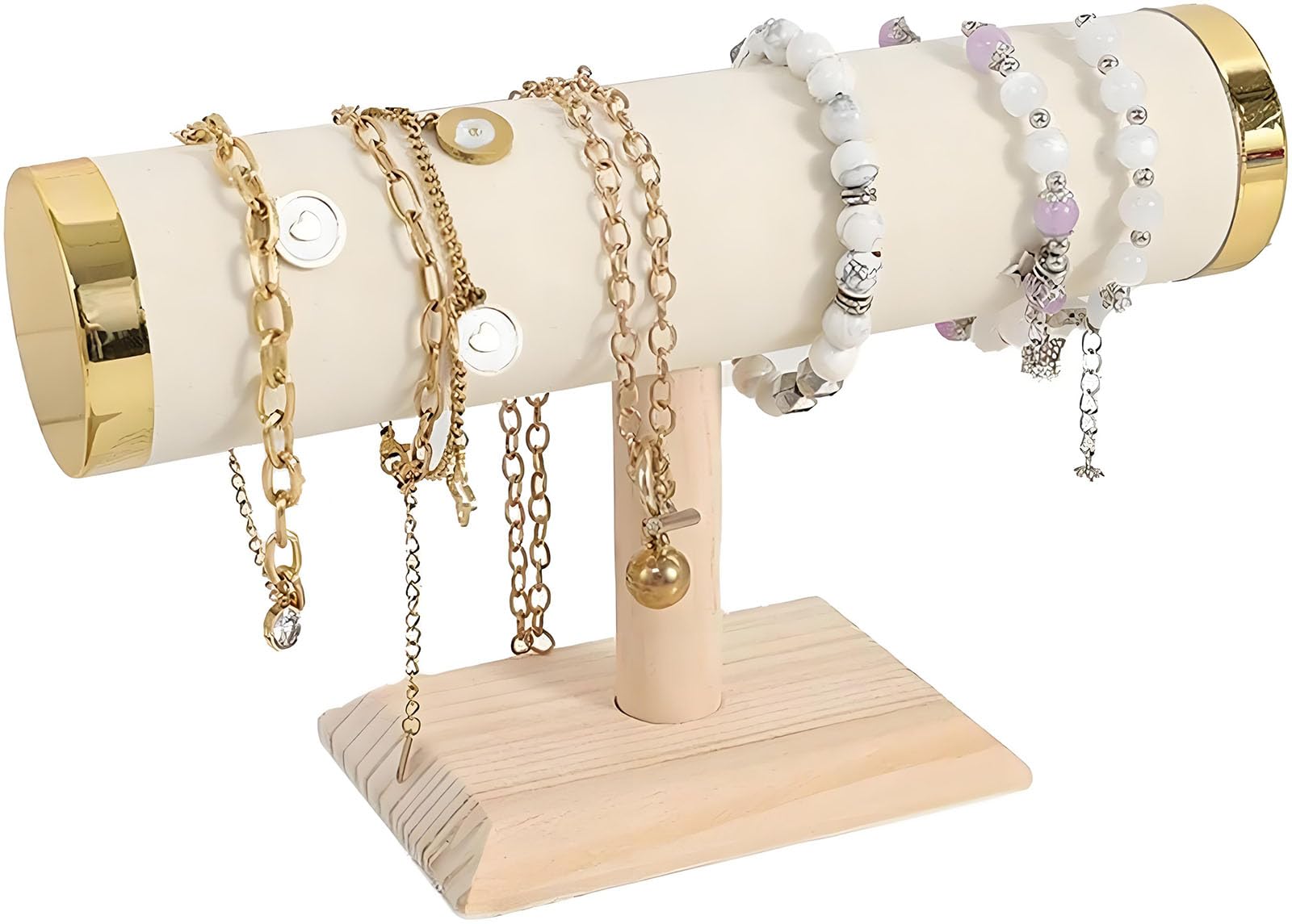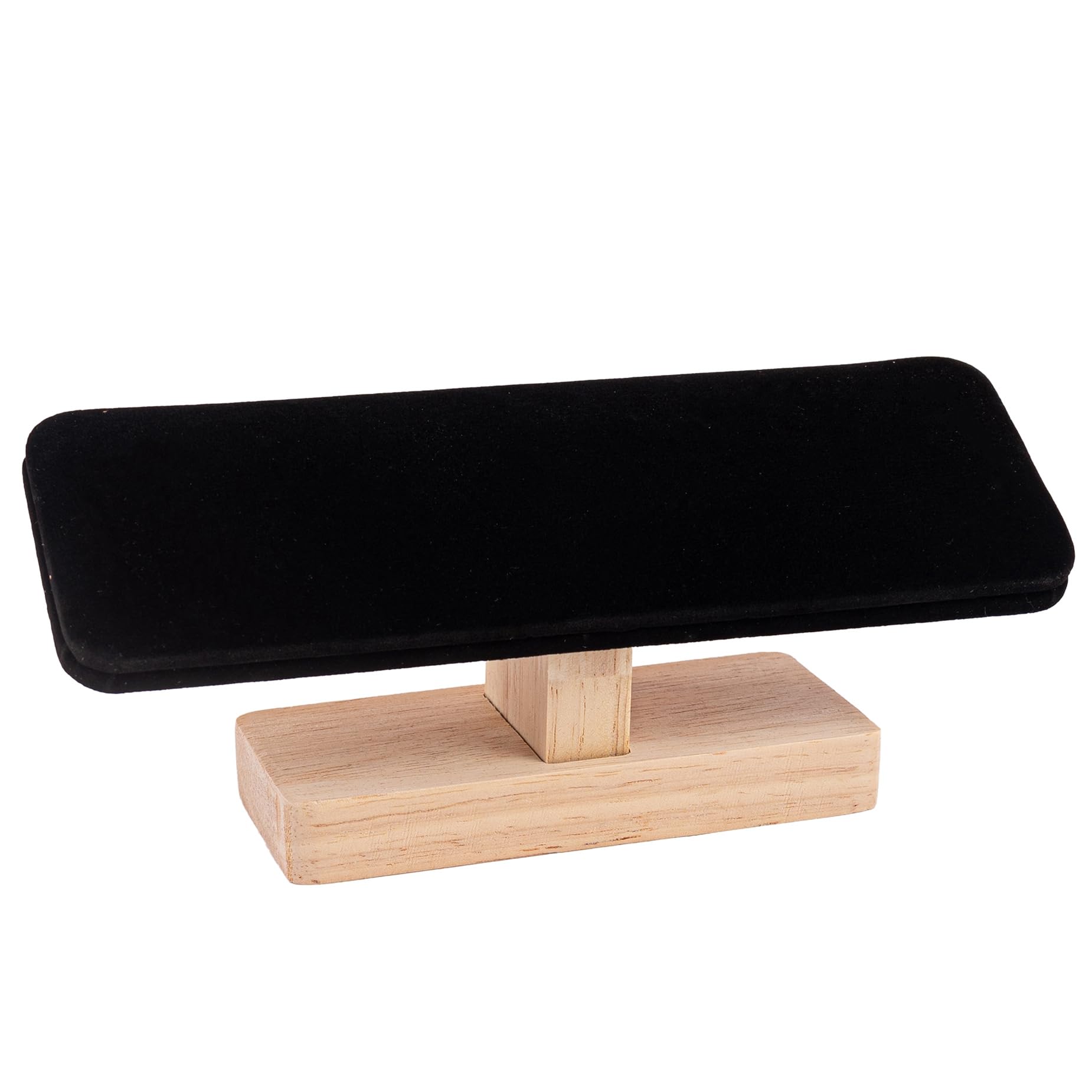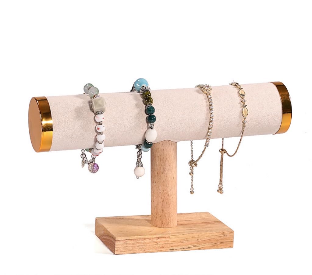 Soporte de barra en T de exhibición de joyas, soporte para pulsera de 9 pulgadas de ancho con base de madera de pino natural, barr