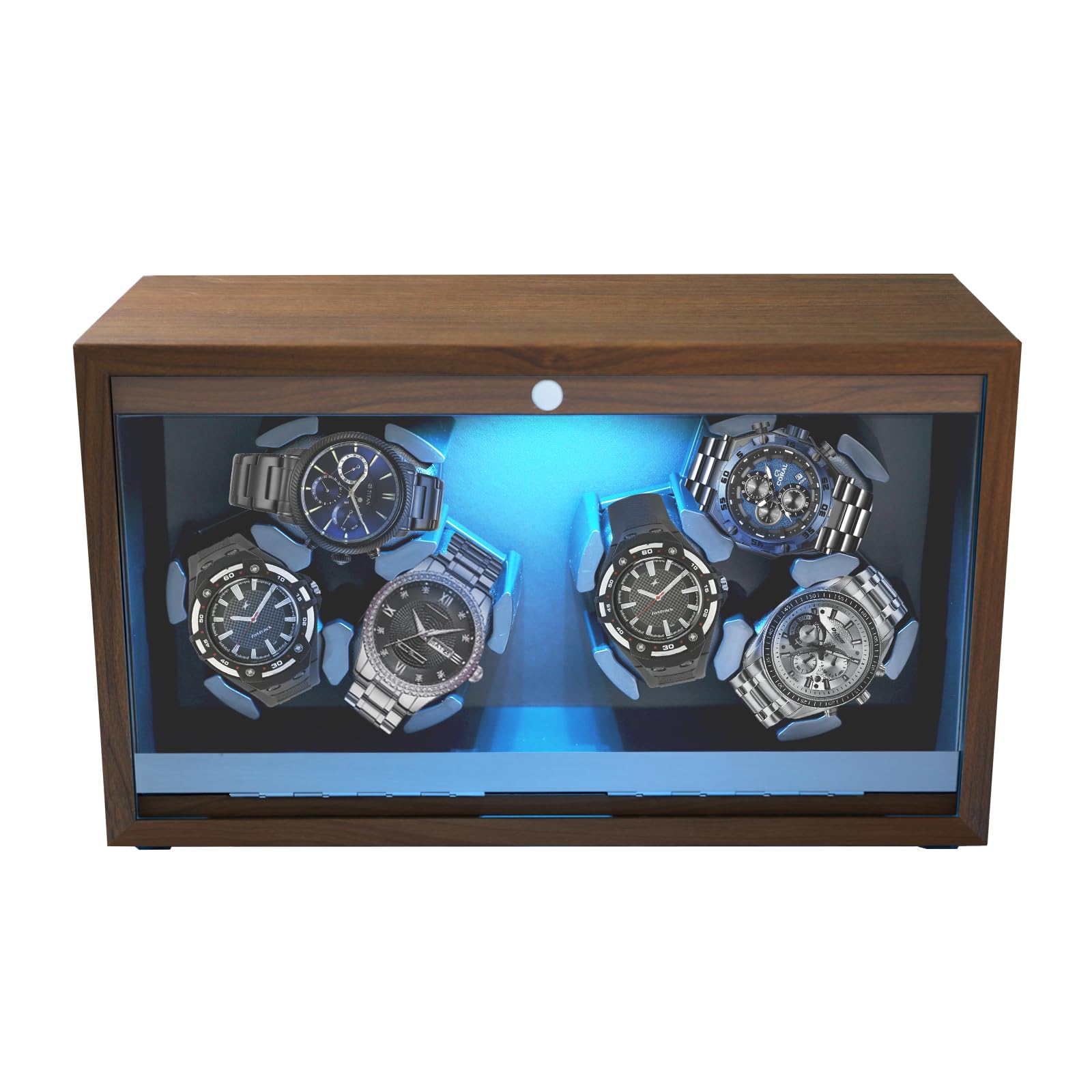 Enrollador de reloj para relojes automáticos, 6 cajas de reloj automáticas, caja de reloj giratoria con retroiluminación azul y al