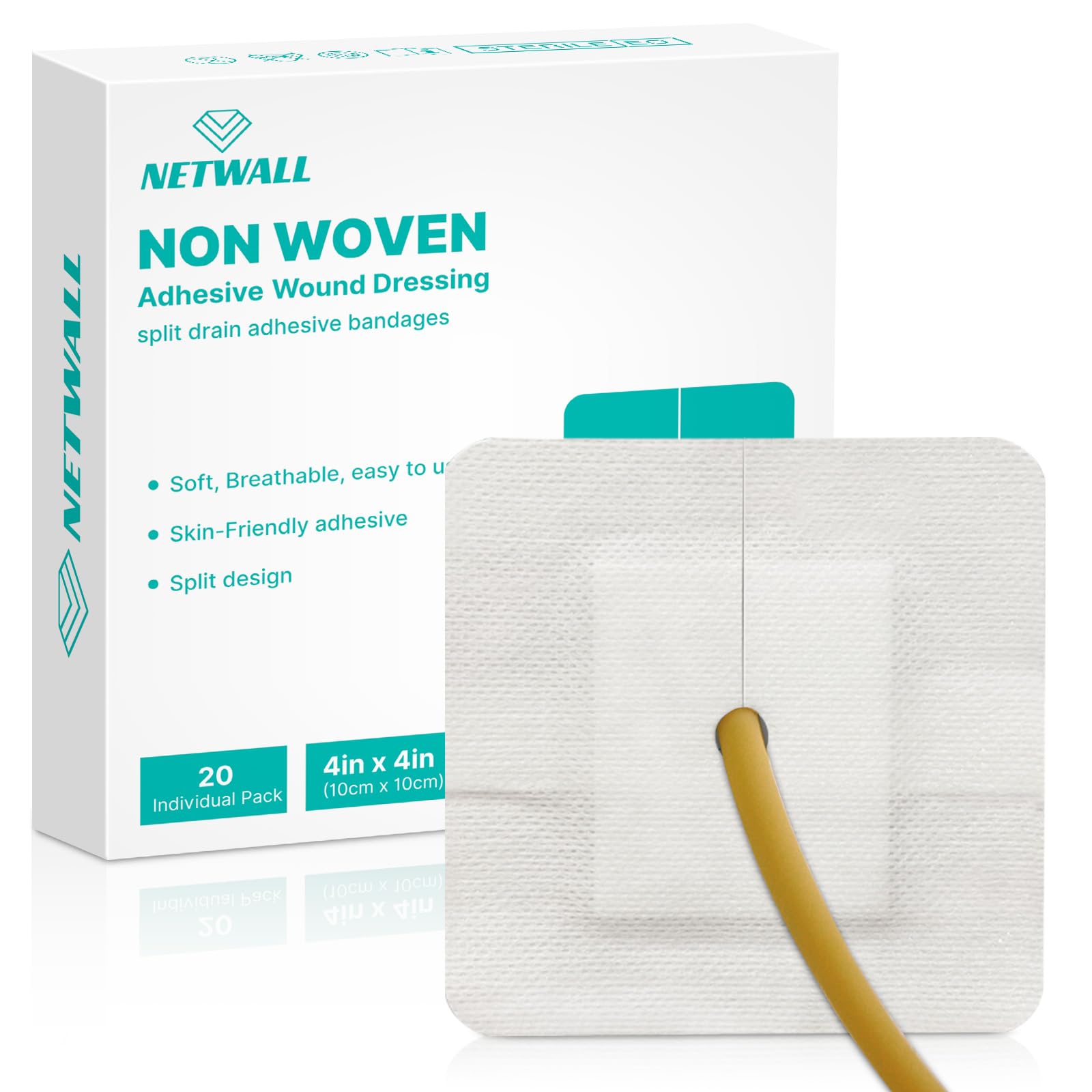Vendajes adhesivos de drenaje dividido de 4 x 4 pulgadas precortados para tubos de alimentación, catéteres de diálisis y drenajes,