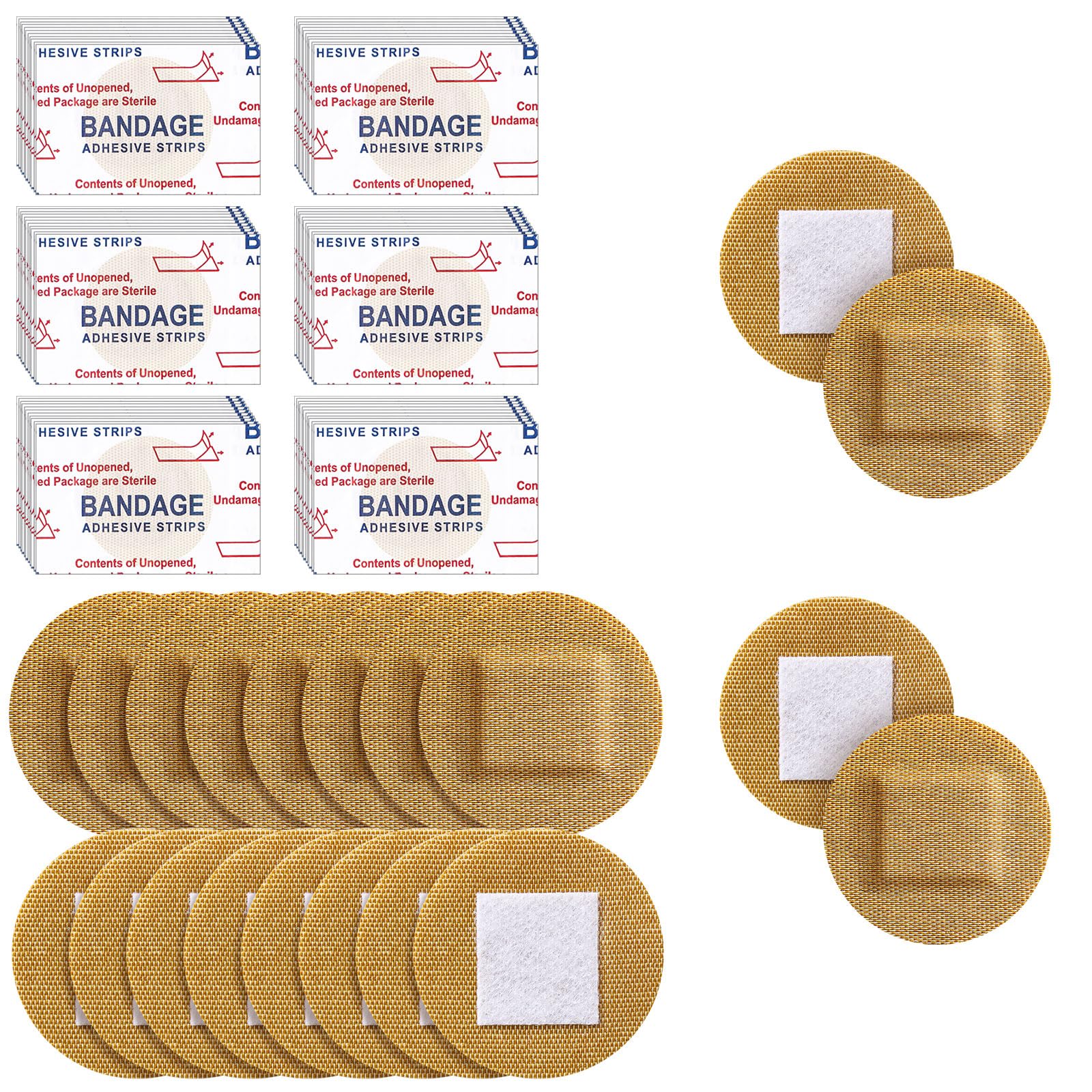 Funtery Vendaje adhesivo de 4 tamaños, redondo, flexible, para tela, redondo, bronceado, sin látex, para el cuidado de heridas y o