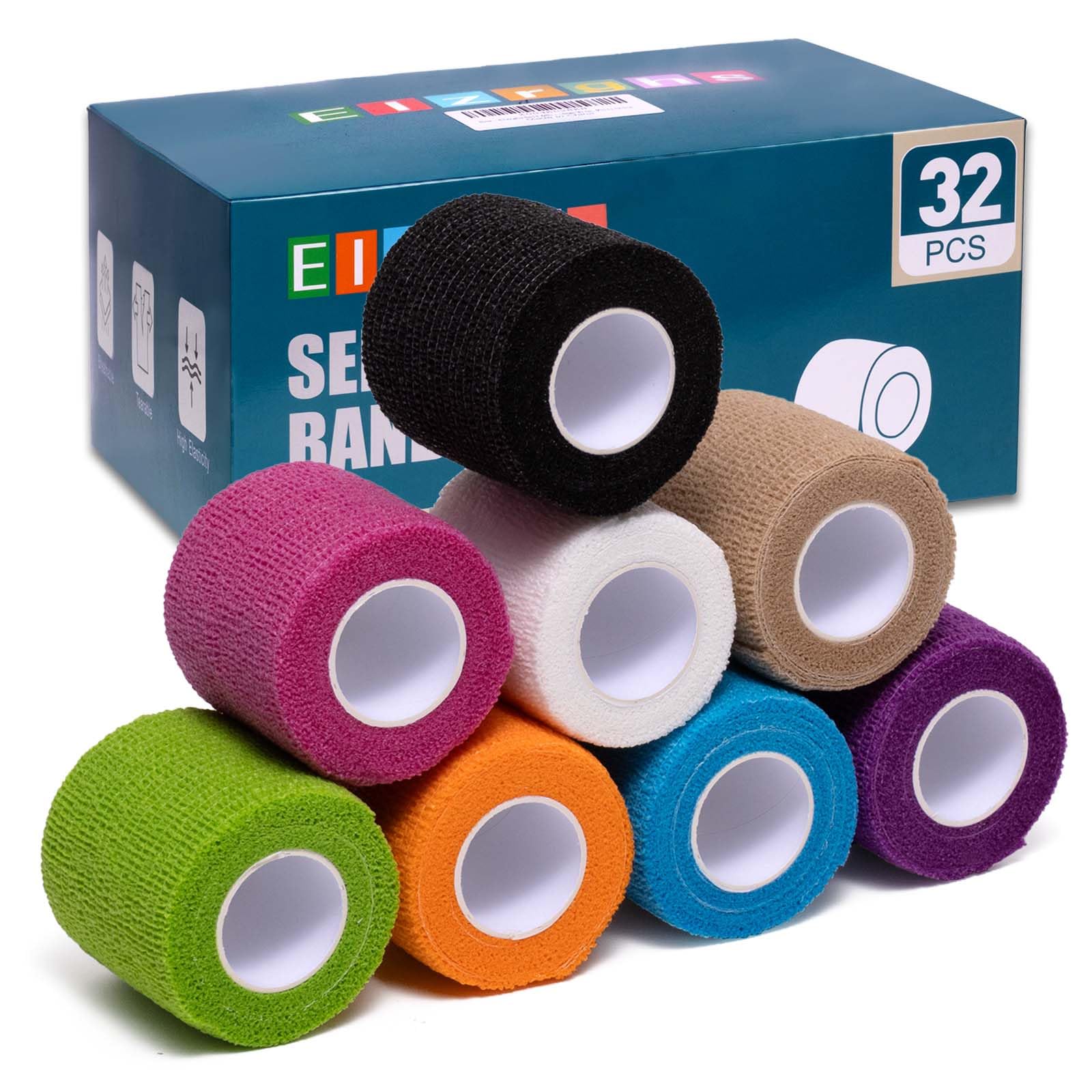 Envoltura de vendaje autoadhesiva, paquete de 32, 2 pulgadas x 5 yardas, vendaje elástico cohesivo, envoltura elástica atlética, e