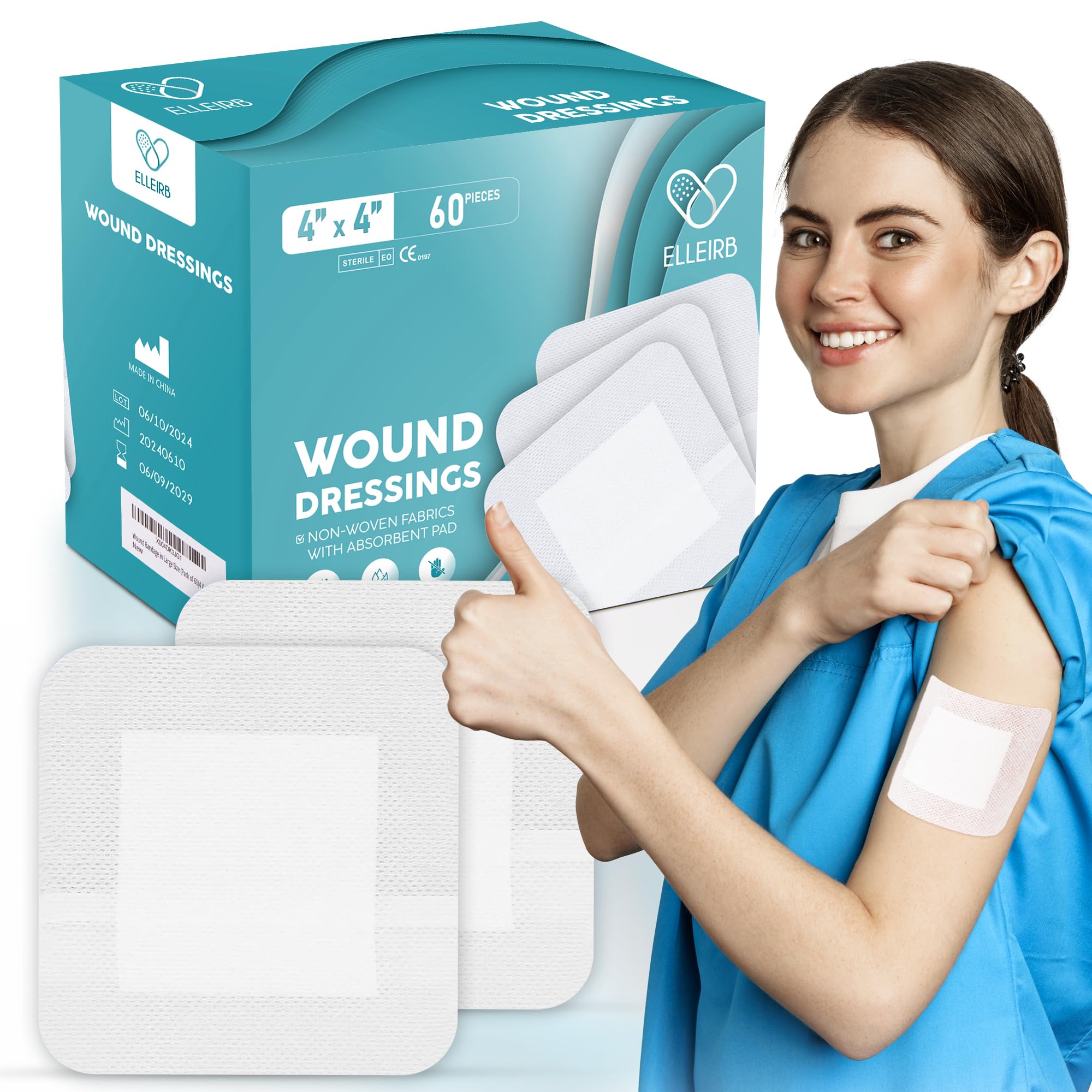 Elleirb – Apósito de isla resistente al agua de 4 x 4, almohadillas antiadherentes con vendajes adhesivos para heridas | 60 vendaj