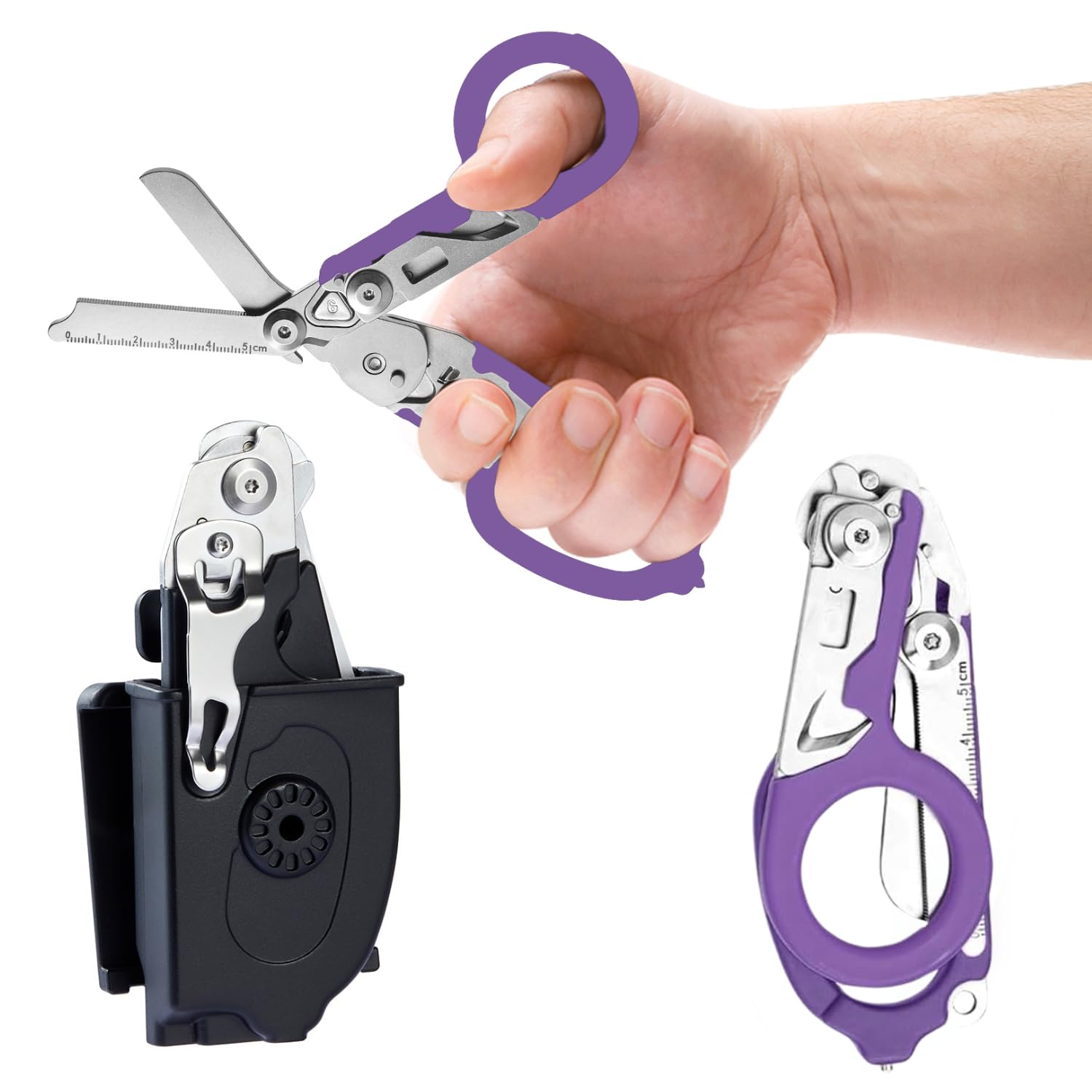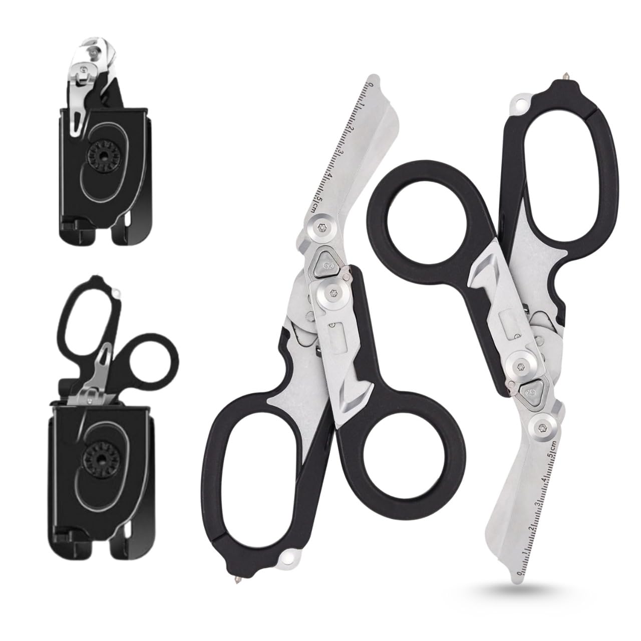 Pack 2 | Tijeras de trauma multifuncionales 6 en 1 plegables con cortador de correa | Tijeras de respuesta de emergencia de acero