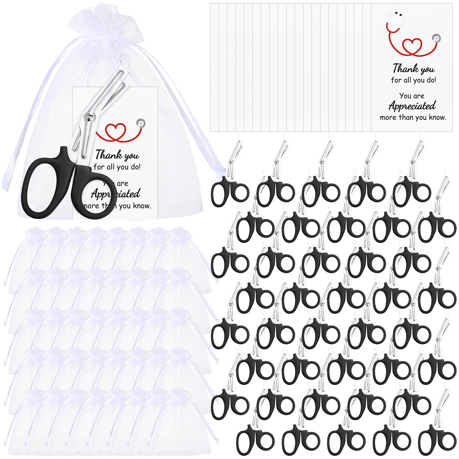 20 tijeras de trauma, regalos para el día de la enfermera, tijeras médicas con bolsas de organza y etiquetas de regalo de agradeci