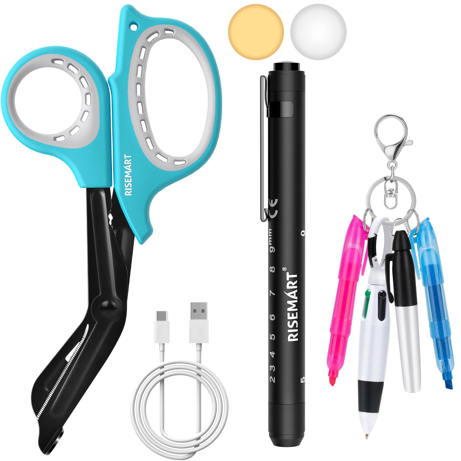 Luz de bolígrafo para enfermeras y tijeras médicas, bolígrafos LED con medidor de pupila, tijeras de vendaje de 7.5 pulgadas, tije