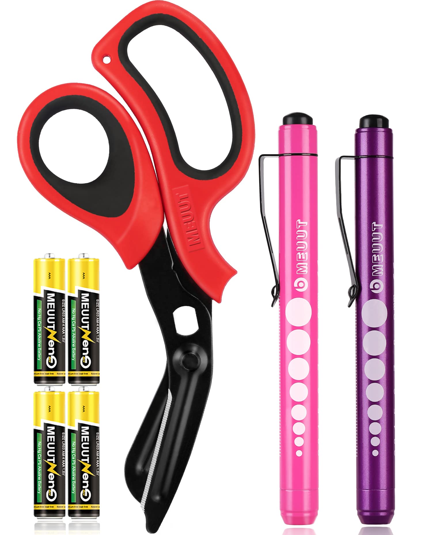 MEUUT Paquete de 3 tijeras médicas para kits de enfermera, dos luces médicas con cuatro baterías, una tijeras de trauma de 8 pulga