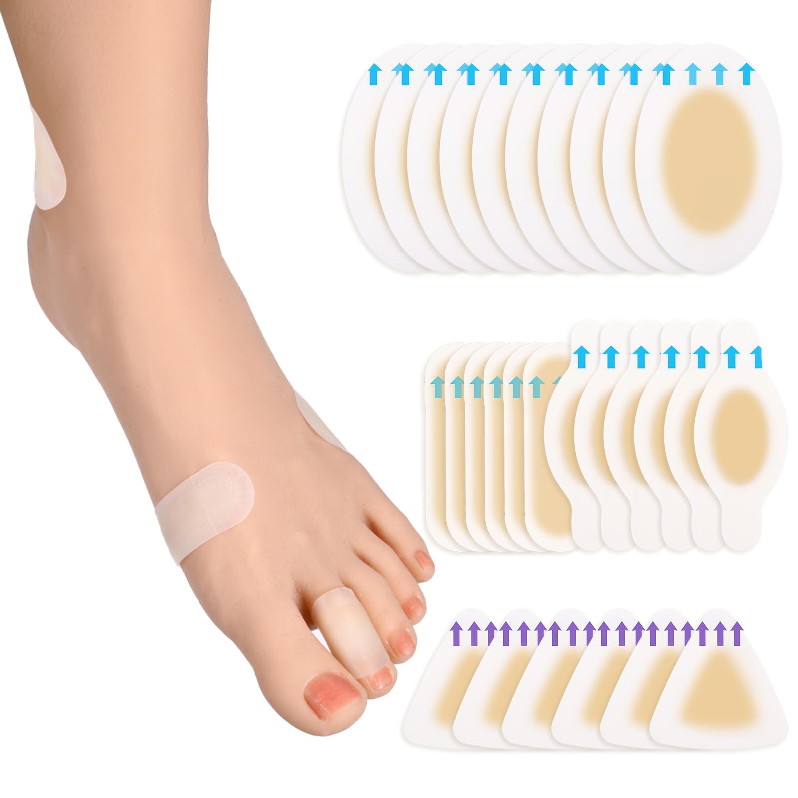 28 Pcs Gel Blister Bandages Long Lasting Foot Cushions Pads Adhesive Waterproof Hydrocolloid Bandages for Feet Fingers Toes Heel M