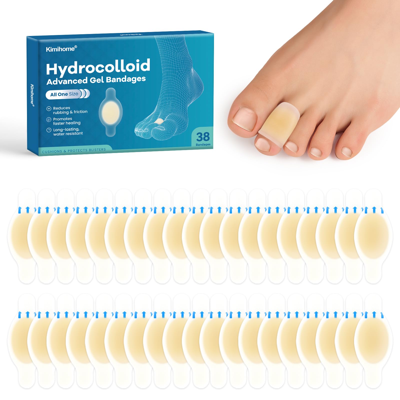 Plantillas hidrocoloides Blister Pads – Kimihome 38 ct impermeable ampollas vendajes – Almohadillas adhesivas para talón, pies, de