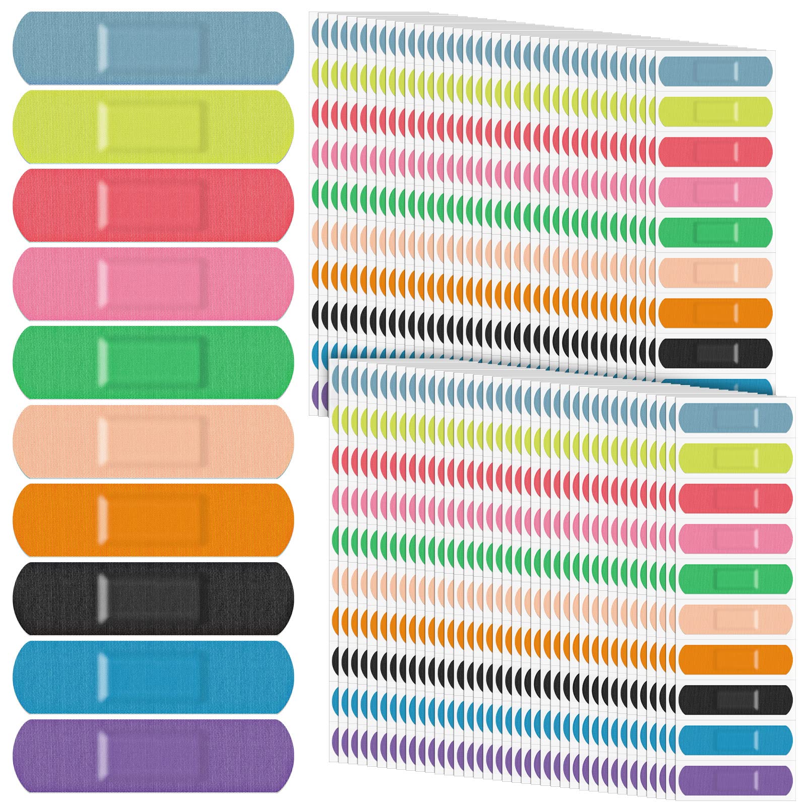 Jetec Vendajes adhesivos de tela flexible a granel, vendajes de tela coloridos a granel, 10 colores, protección flexible y cuidado